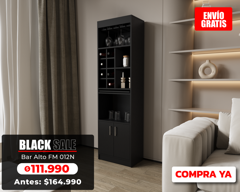 Bar Esquinero Con Soporte Para Copas, Negro, FM Furniture