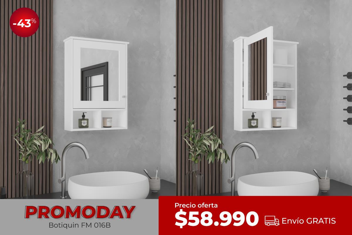 Botiquin Con Una Puerta Con Espejo, FM Furniture, Blanco
