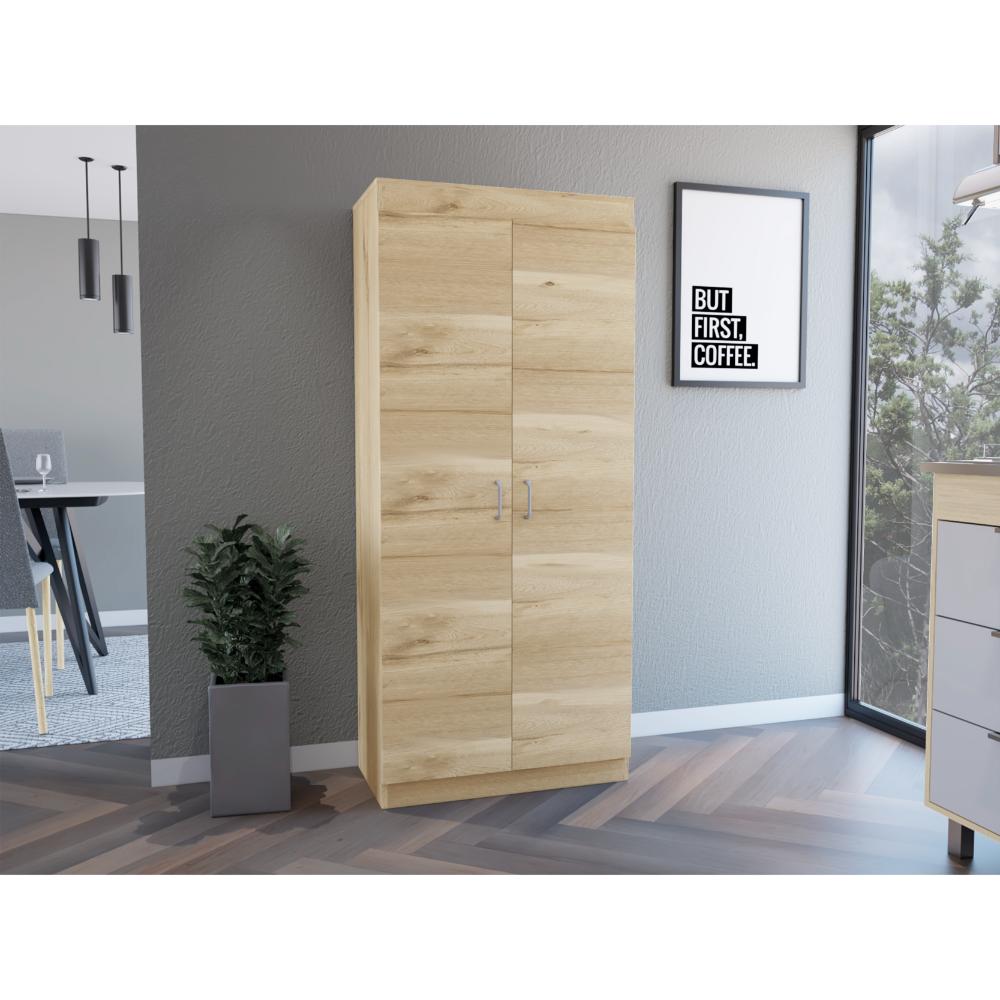 Despensa de Cocina Varese, Café claro y Blanco Vainilla, Posee Un Estante Adicional En La Puerta y Cuatro Entrepaños