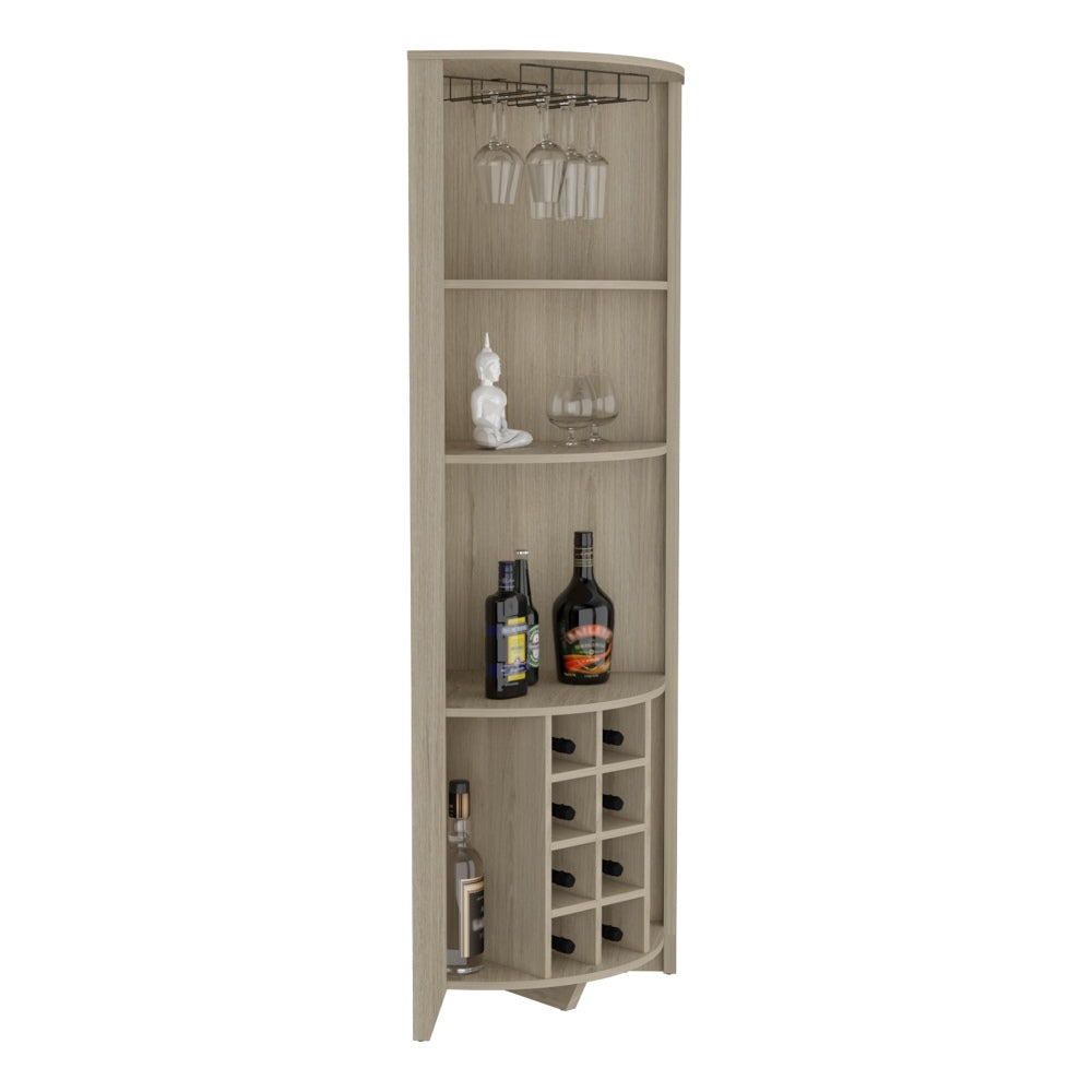 Bar Esquinero Essential, Rovere, con espacio para botellas y portacopas