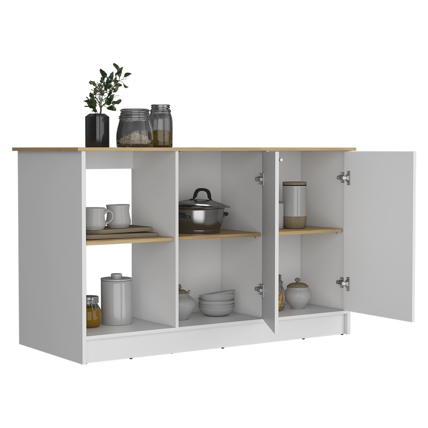 Barra de Cocina Samara, Blanco y Macadamia, con Tres Entrepaños
