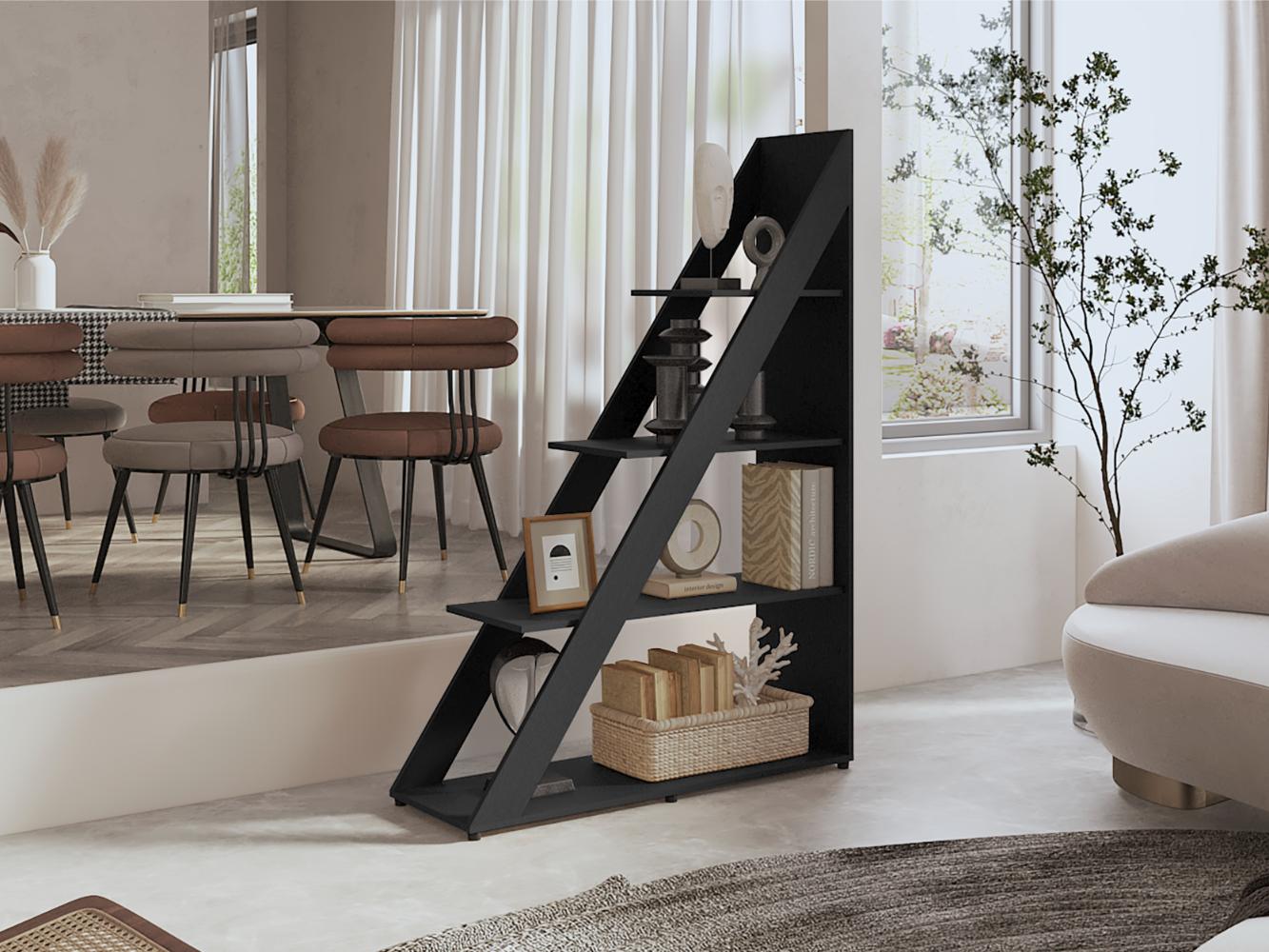 Biblioteca Diagonal Lorain Tres Repisas, Wengue, con Entrepaños y Diseño Moderno