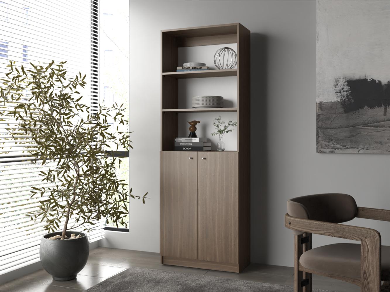Biblioteca Estante Dos Puertas Cuatro Repisas, Café Oscuro Y Blanco