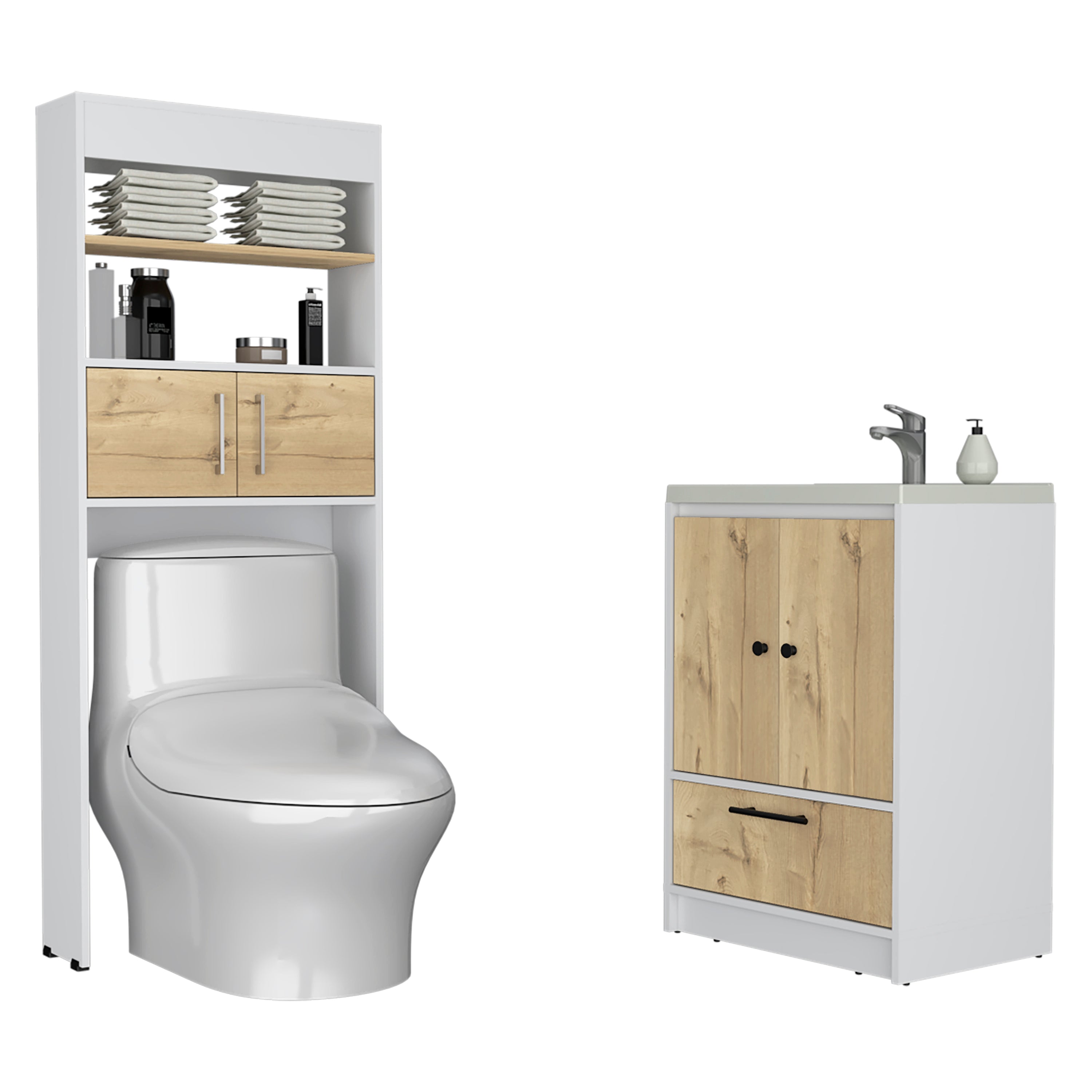 Combo Bicolor: Mueble Optimizador, con 1 cajón deslizable, 1 puerta batiente, y variedad de entrepaños. Mueble Lavamanos, 2 puertas batientes...