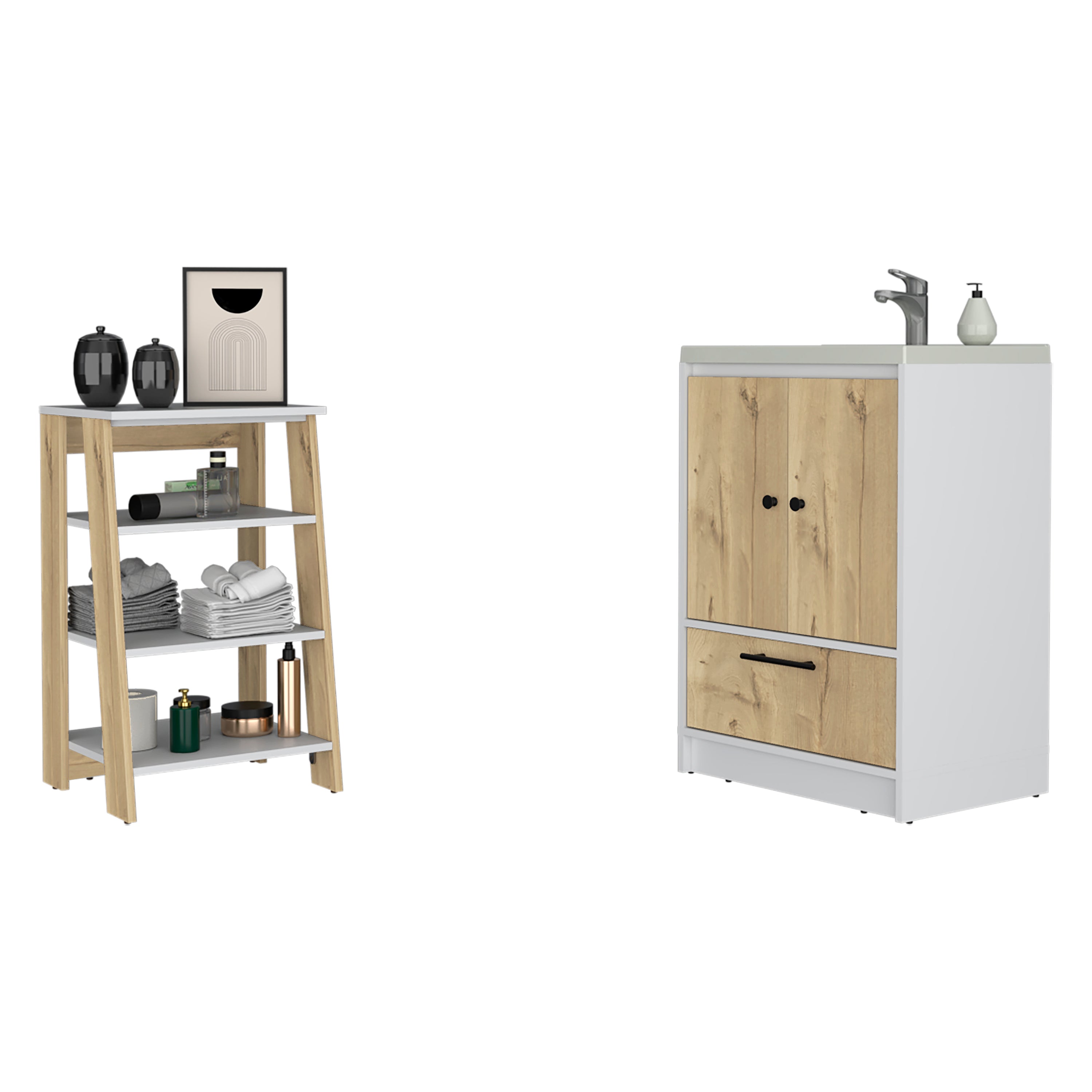 Combo Barcelona: Mueble de Lavamanos, con 1 puerta batiente con manija y 2 repisas para colocar objetos. Mueble Auxiliar, con...