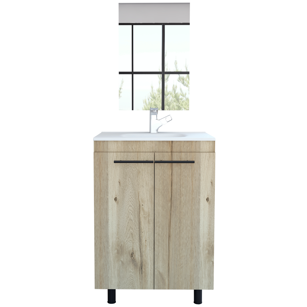 Combo Reflekta: Espejo, moderno y de fácil instalación. Mueble de Lavamanos, con 2 puertas batientes con manija, 2 repisas para...