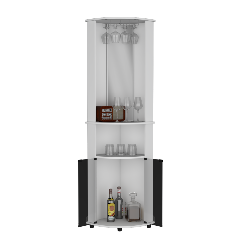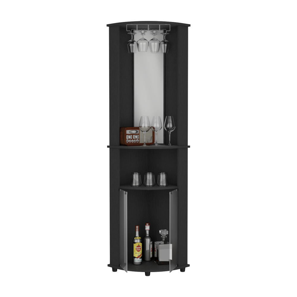 Bar Esquinero con Espacio para Botellas de Vino y Copas Elaborado en Madera aglomerada MDP, recubierta con láminas melamínicas de...