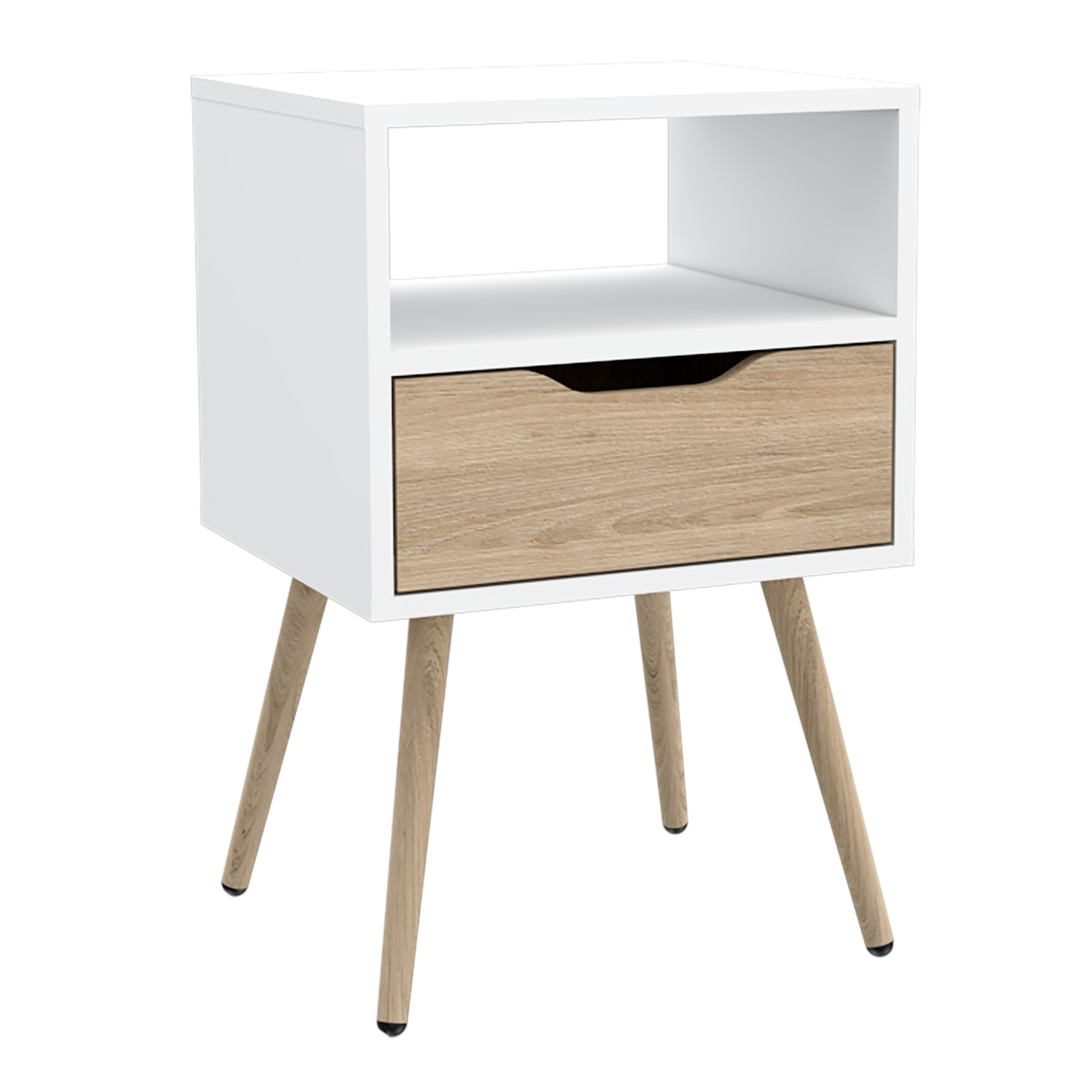 Velador Un Cajon, FM Furniture 015B, Blanco Y Café Claro