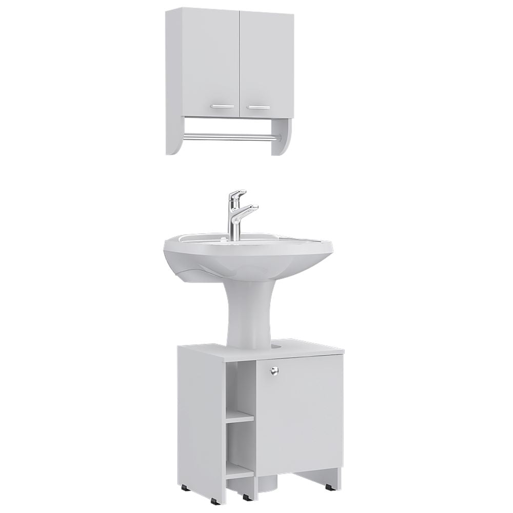 Combo My Bath: Botiquin, con 2 puertas batientes, entrepaños y tubo cromado. Mueble de Lavamanos, con 1 puerta batiente con...