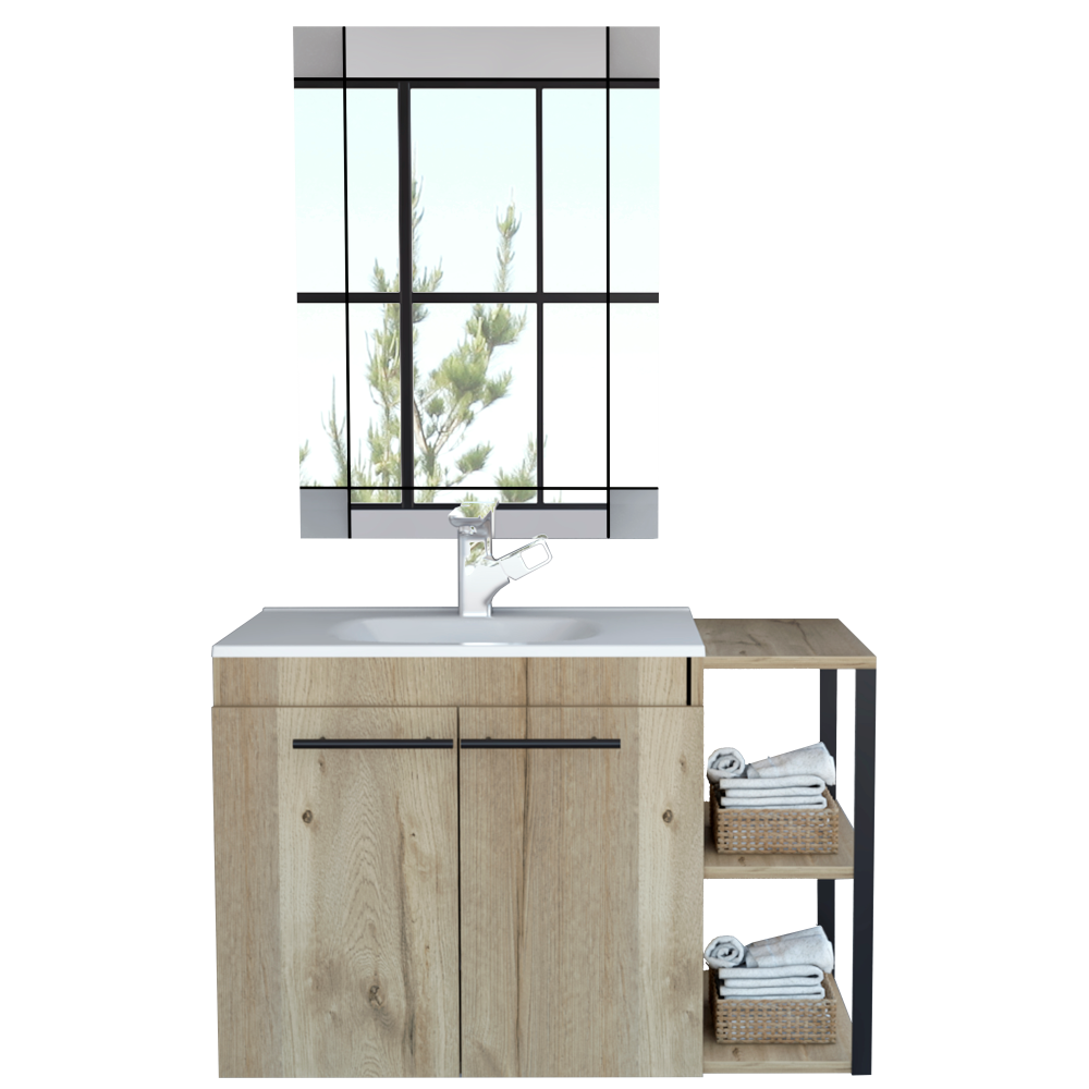 Combo Reflekta, Rovere y Blanco, incluye mueble de lavamanos y espejo salermo