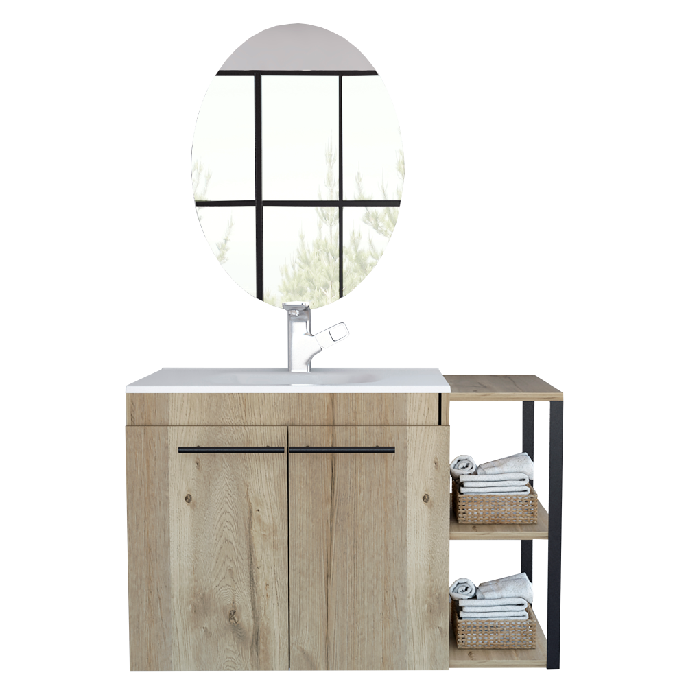 Combo Reflekta: Espejo Flotante, de forma ovalada. Mueble de Lavamanos, con 1 puerta batiente con manija y 2 repisas para...