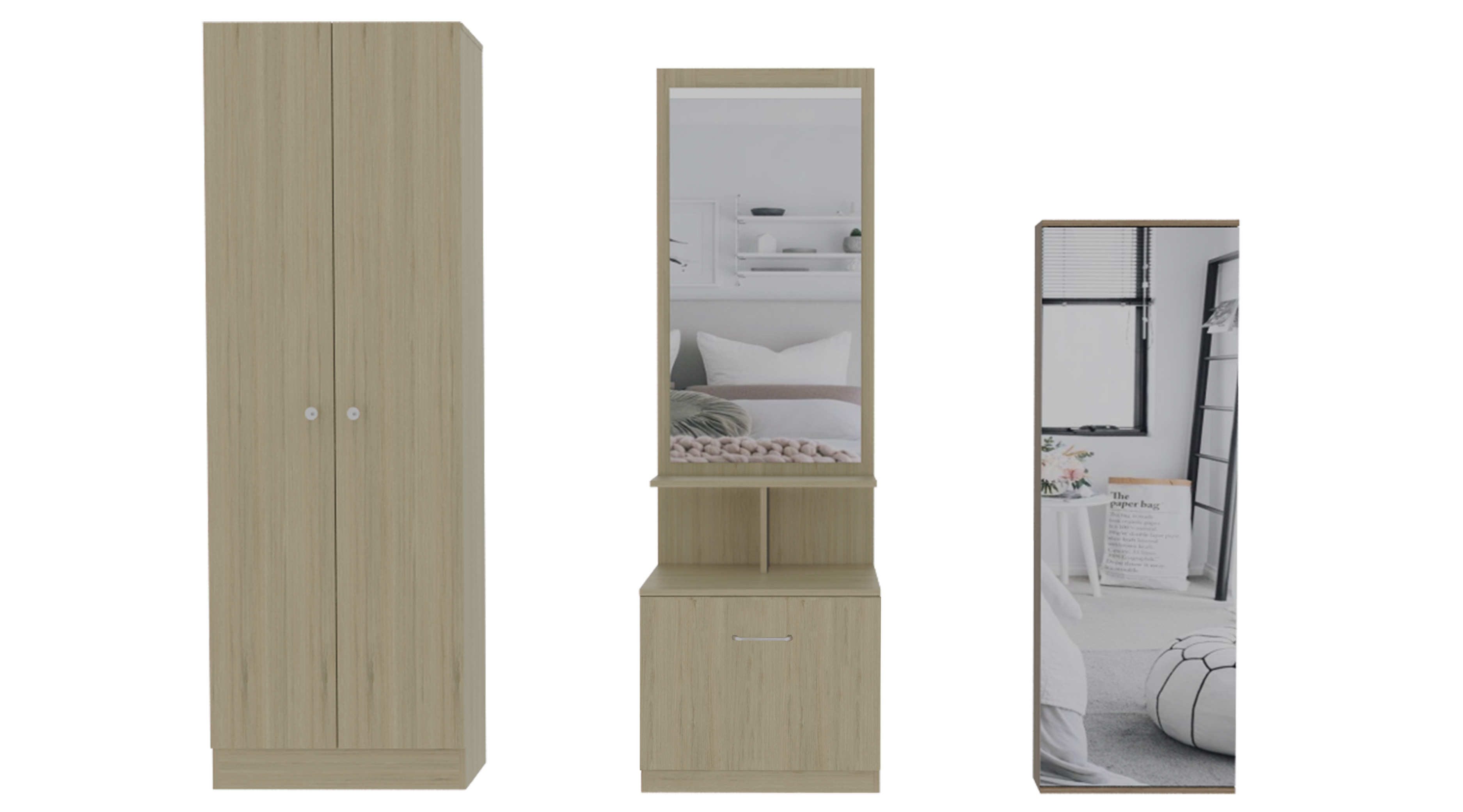 Combo Perla, Rovere y Blanco, incluye mueble de tocador, cl+oset y velador con espejo
