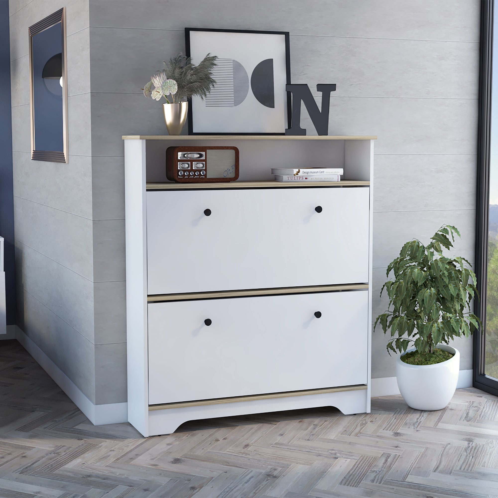 Comoda Zapatero Dos Puertas, FM Furniture 017B, Blanco Y Cafe Claro