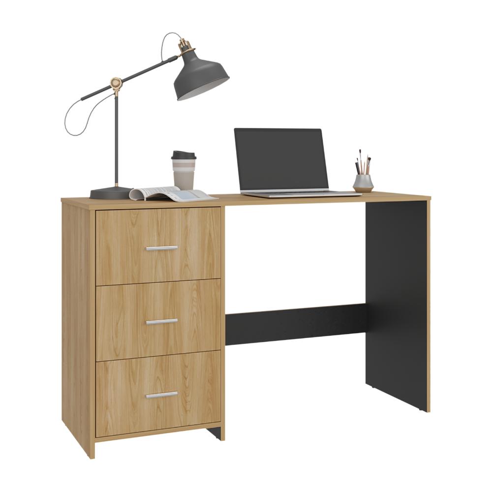Escritorio Zoelo, Fresno Europeo y Wengue, con Tres Cajoneras Manijas Metálicas y Amplio Espacio de Almacenamiento