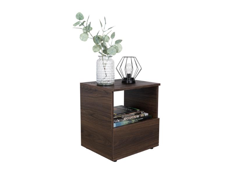 Velador Tutto, Nogal y Blanco, con Cajón Para Guardar Objetos Ideal Para Espacios Reducidos