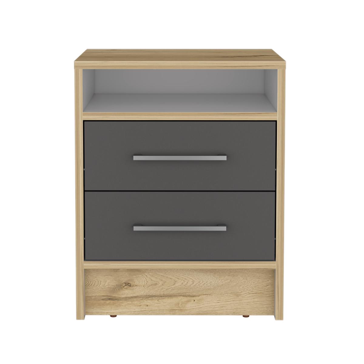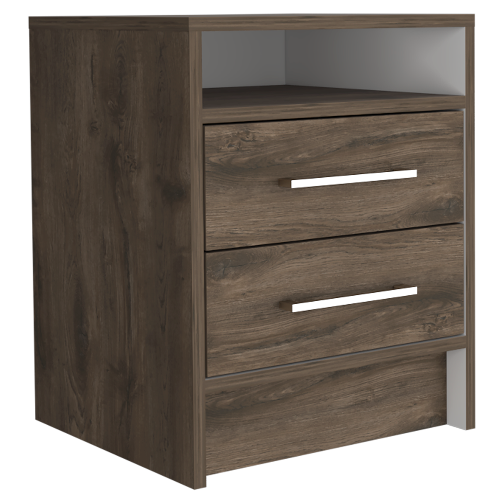 Velador Un Cajón, FM Furniture 015C, Café Claro Y Blanco