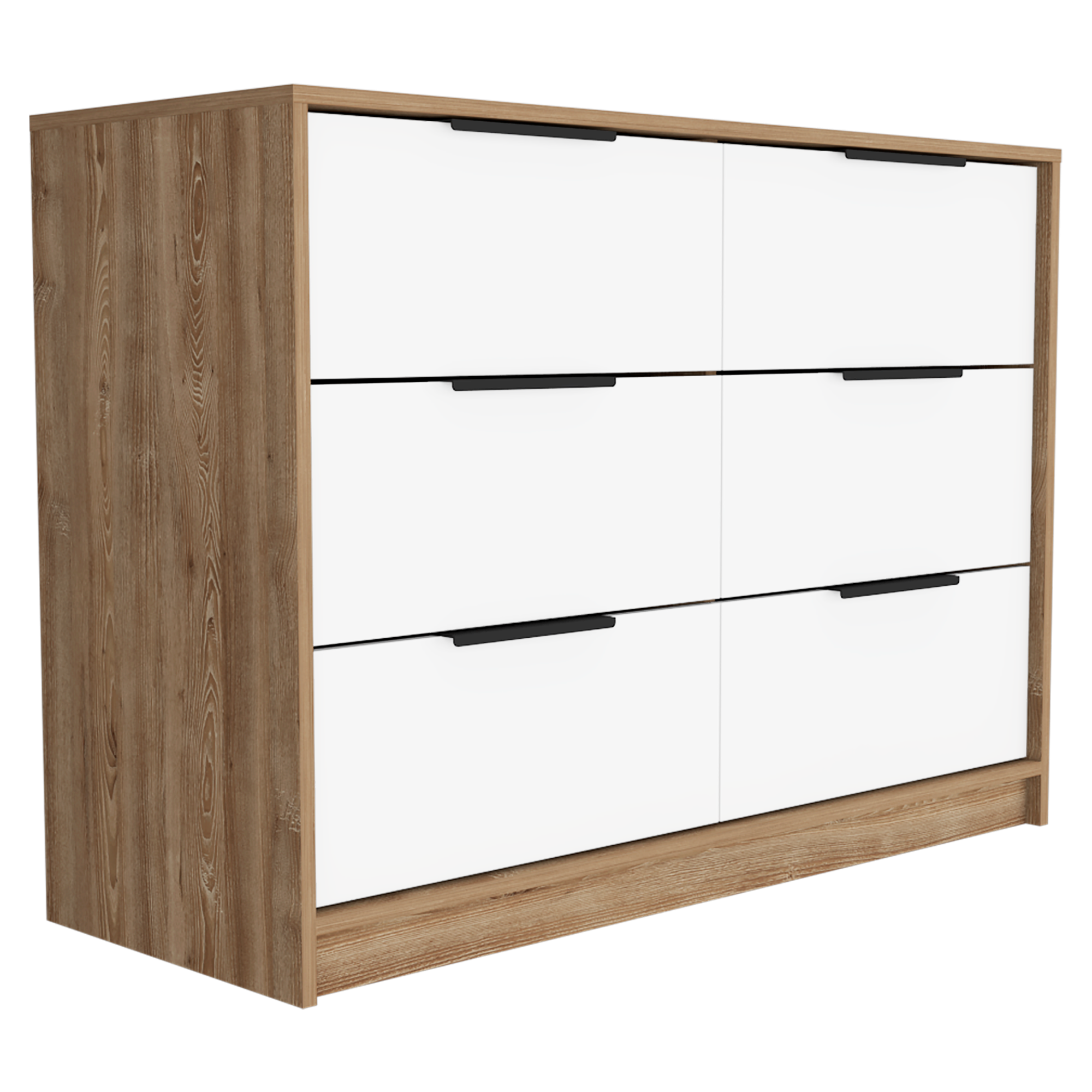 Comoda Cuatro Cajones Dos Puertas Abatibles, FM Furniture 020C, Café Claro Y Blanco