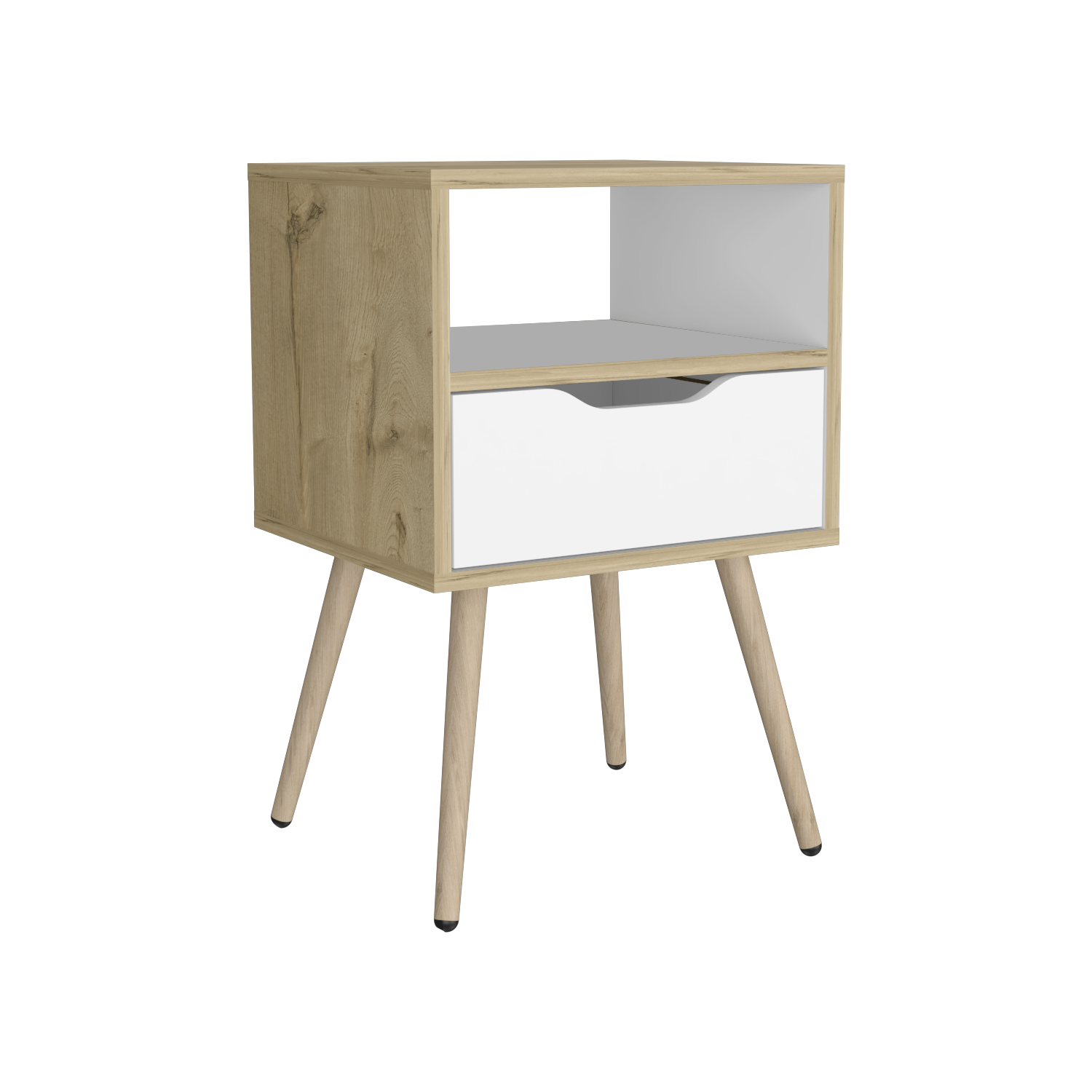 Velador Un Cajón, FM Furniture 015C, Café Claro Y Blanco