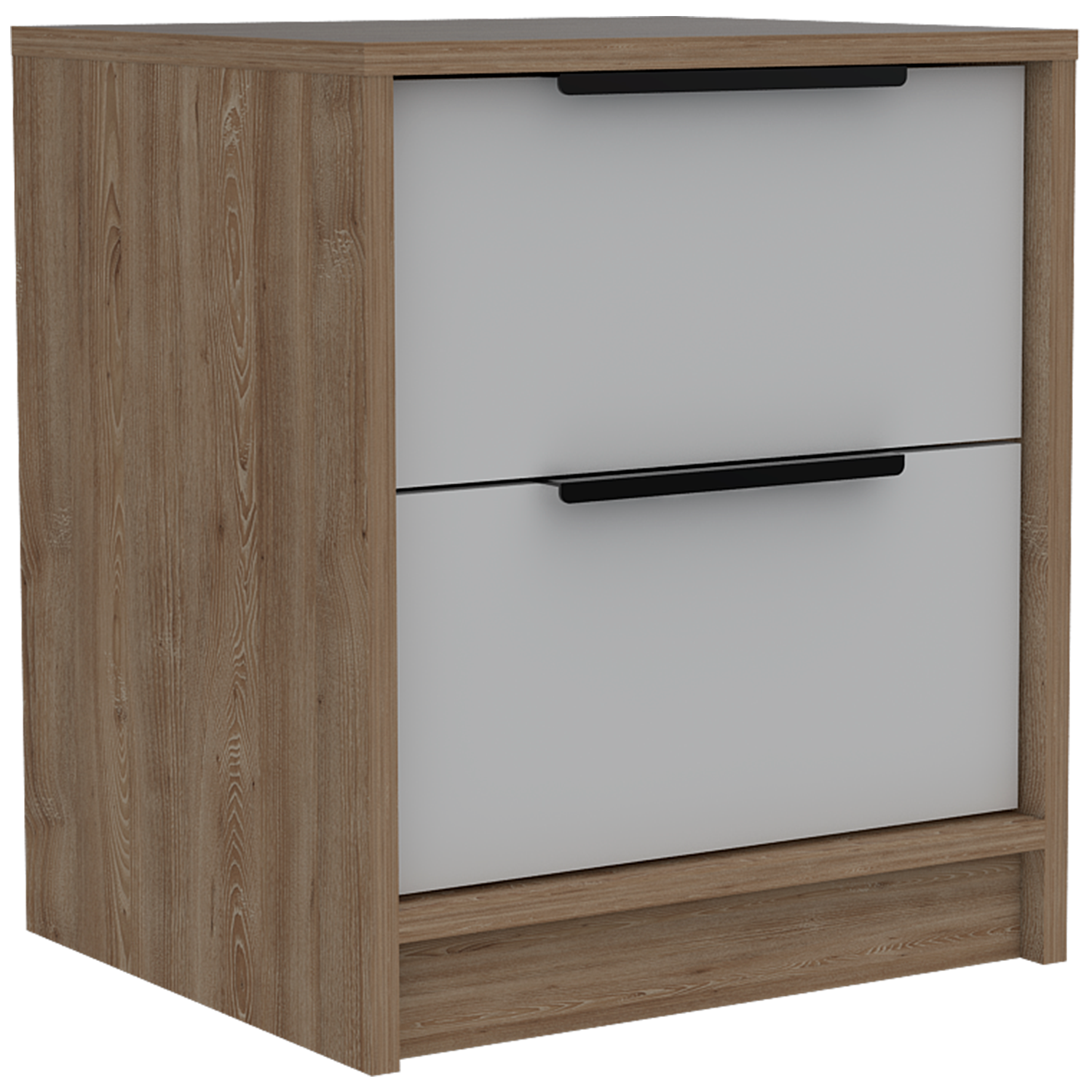 Velador Dos Cajones, FM Furniture 021C, Café Claro Y Blanco