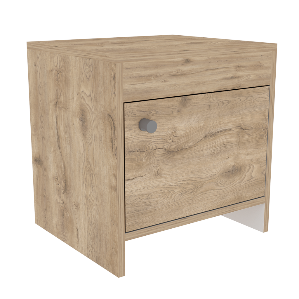 Velador Una Puerta, FM Furniture 026B, Café Claro Y Blanco