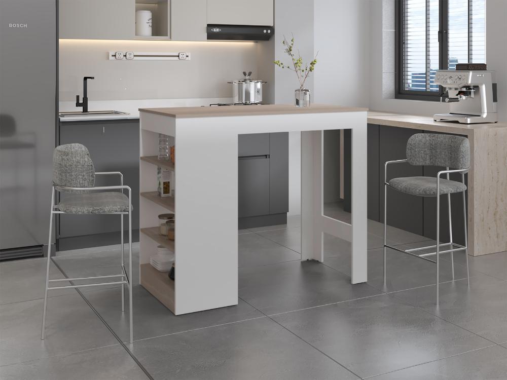 Barra Auxiliar de Cocina Greer, Blanco Duqueza y Bardolino, con espacio para ubicar objetos de cocina