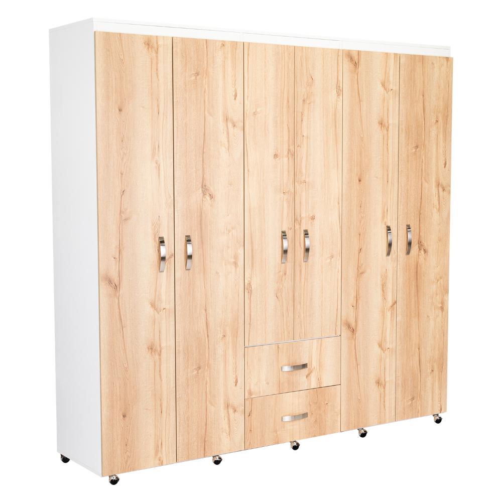 Closet Bariloche Bombay, Café Claro y Blanco Duqueza con Variedad de Entrepaños y Seis Puertas Abatibles