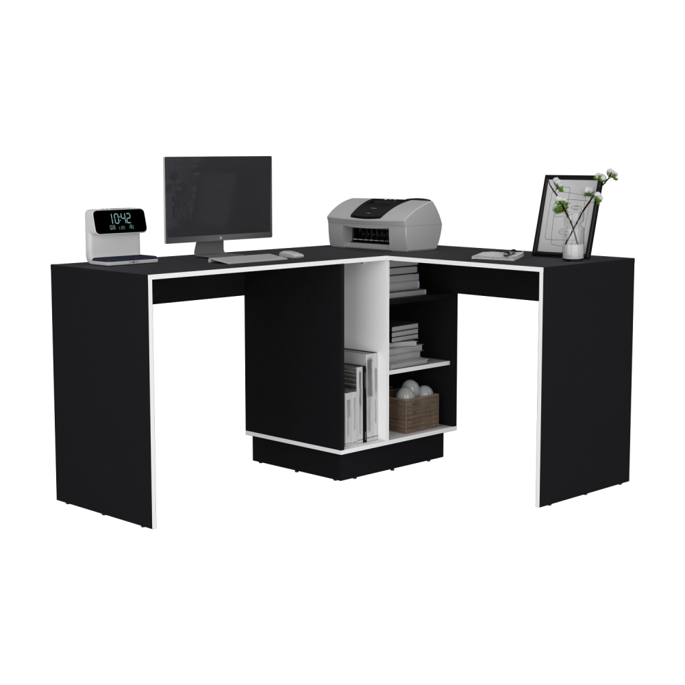 Escritorio En L Rookie, Blanco y Wengue, amplio espacio de trabajo