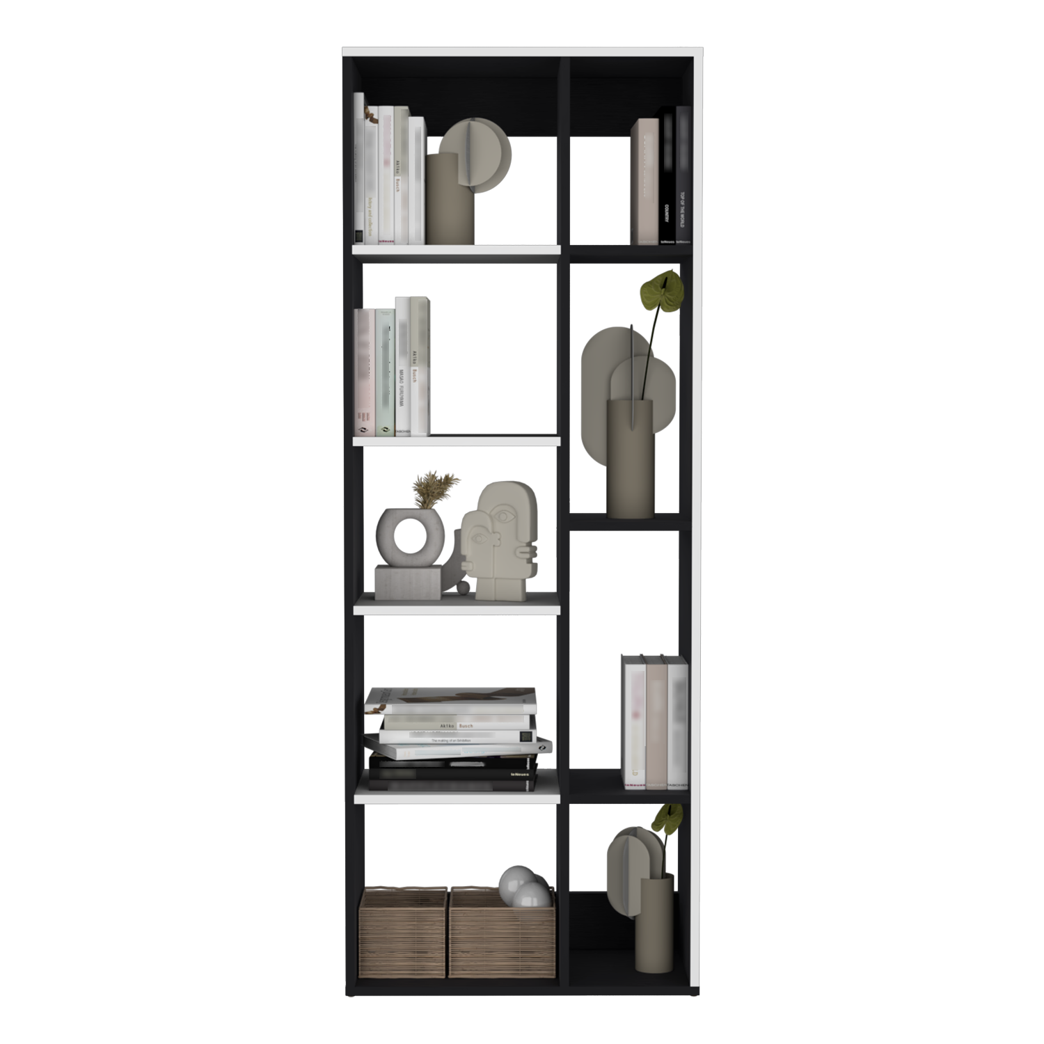 Biblioteca Rookie, Blanco y Wengue, con múltiples entrepaños para colocar objetos