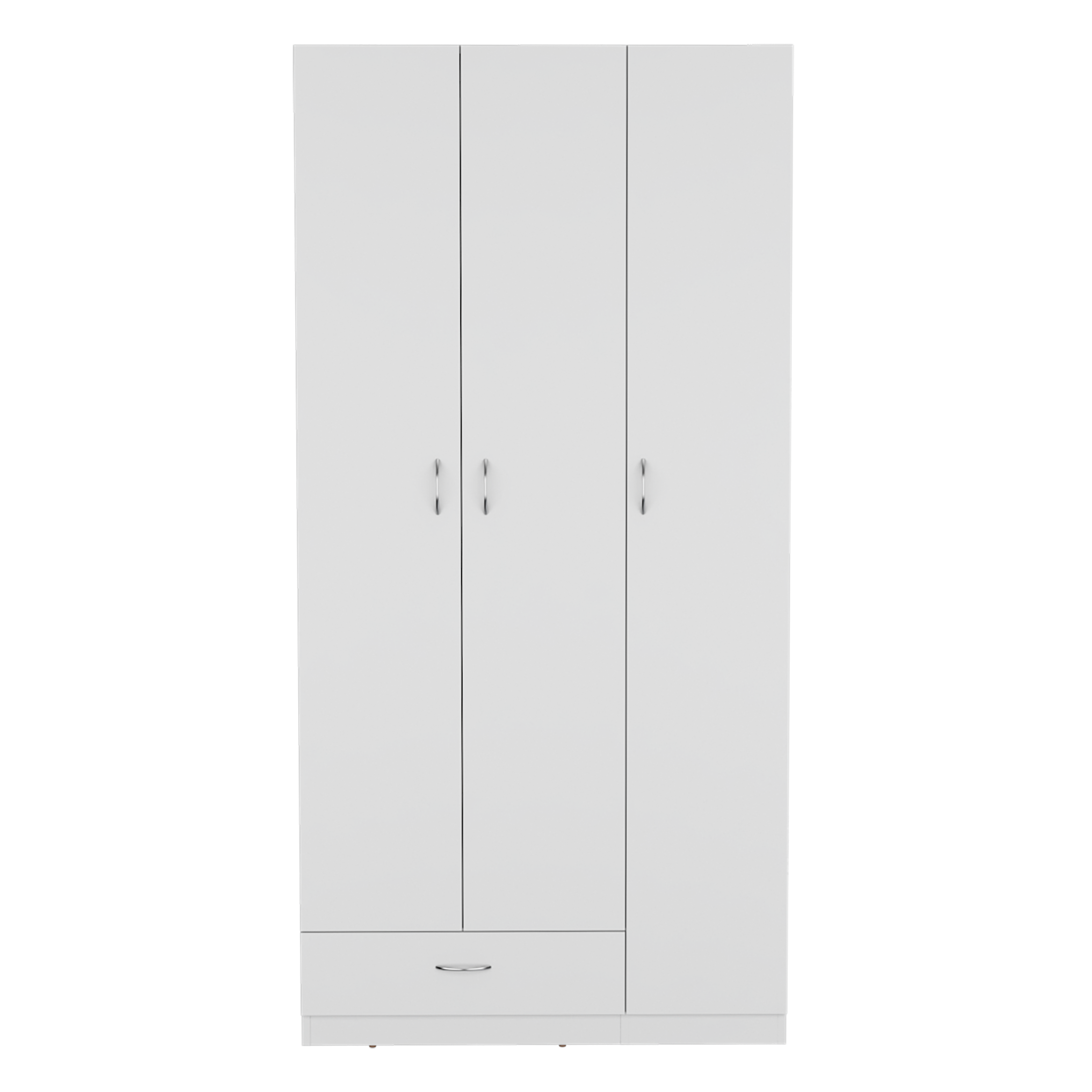 Armario, con 1 cajón organizador, 2 tubos cromados para colgar ropa, 3 puertas batientes. Elaborado en Madera aglomerada MDP, recubierta...