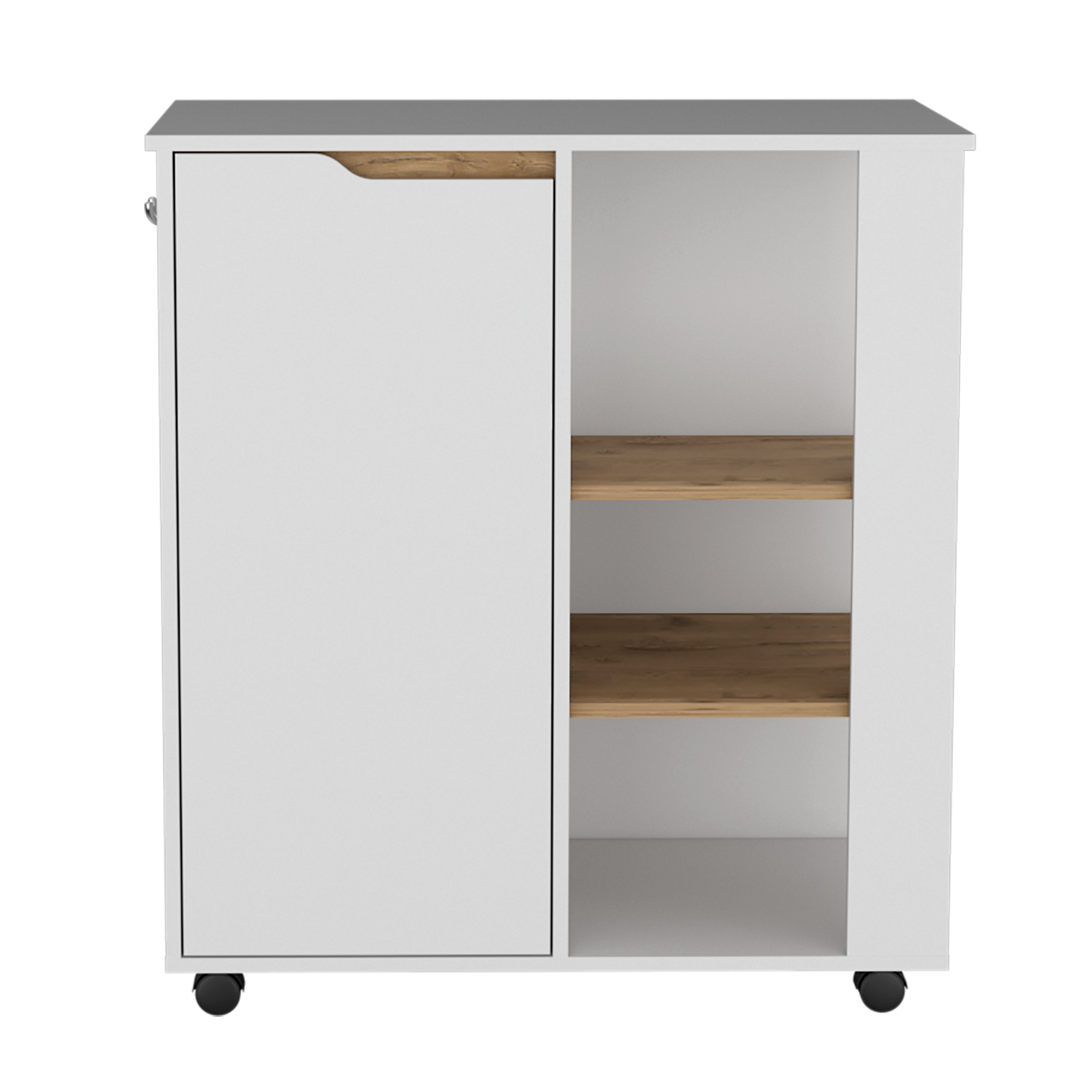 Mueble Microondas Soler, Blanco y Macadamia, con espacio para colocar horno microondas