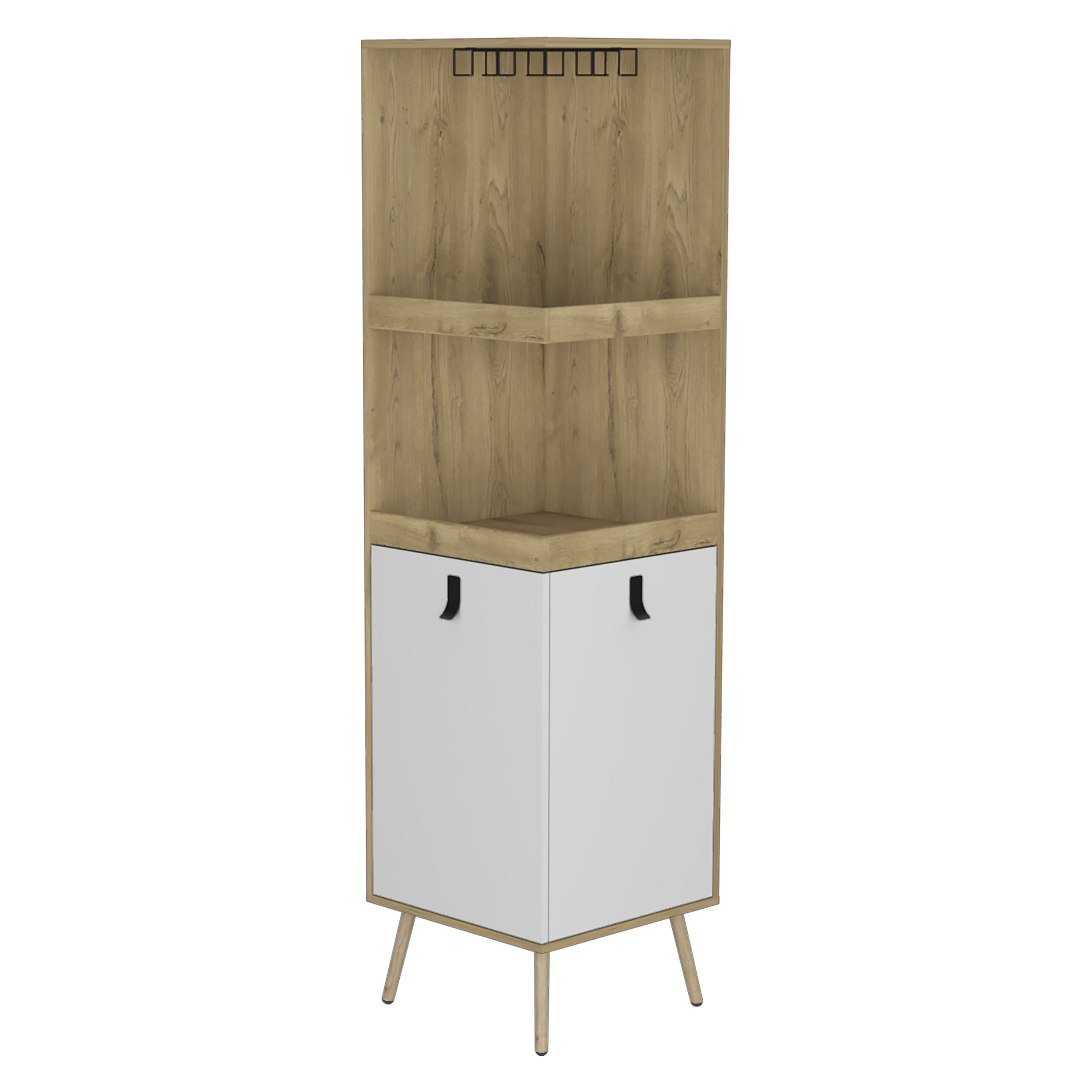 Bar Esquinero Huna, Macadamia y Blanco, con amplio espacio para botellas y portacopas