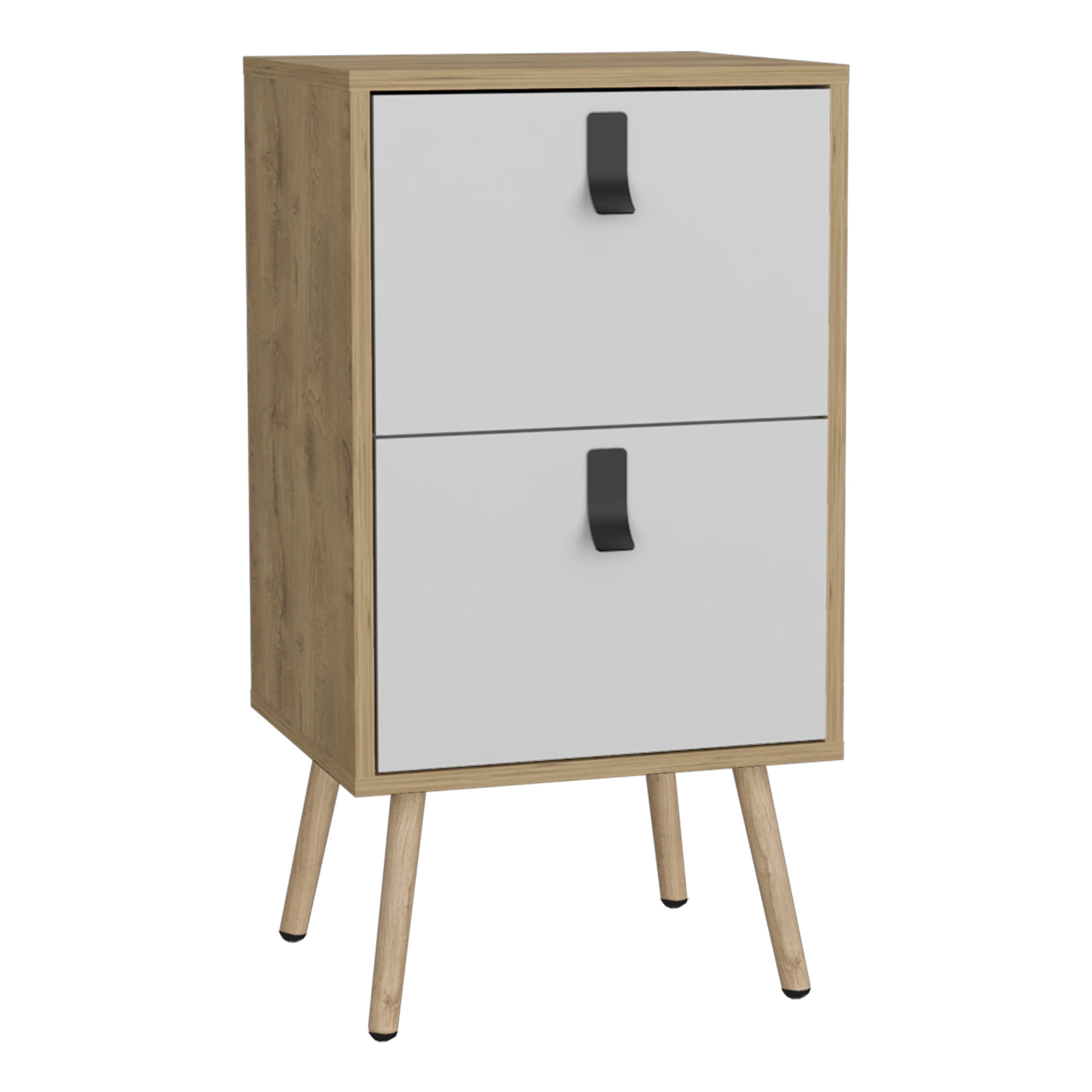 Cómoda Alta Huna, Macadamia y Blanco, con una puerta y dos cajones.