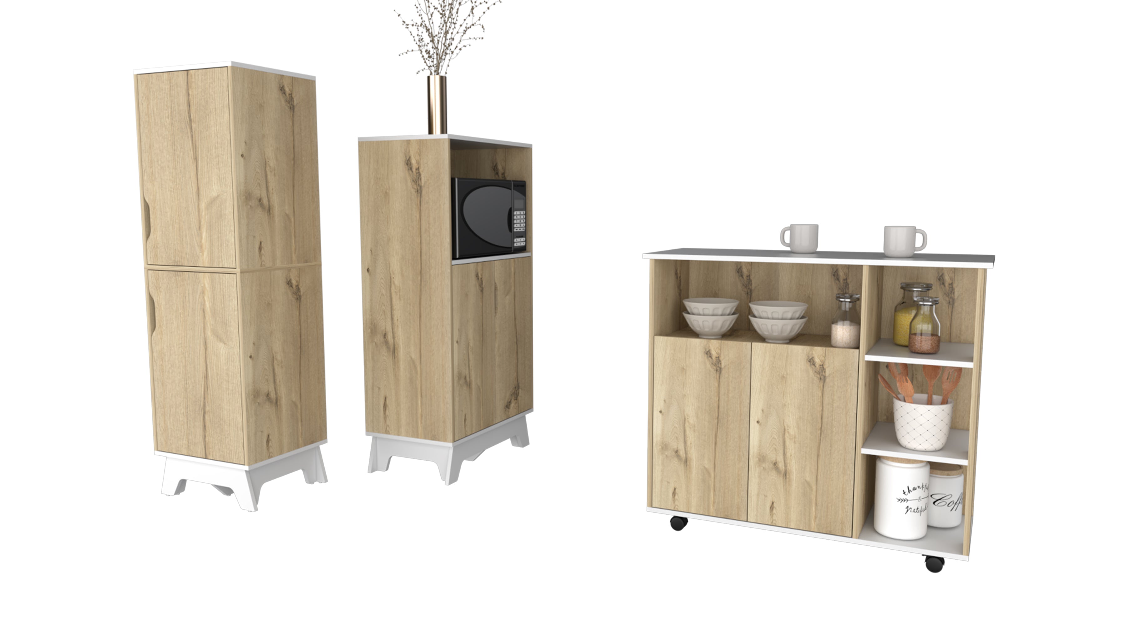 Combo Bicolor, Duna y Blanco, incluye meson de cocina y mueble de microondas bajo