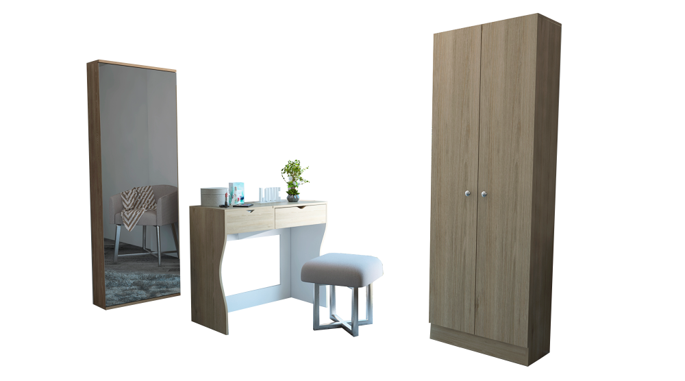 Combo Perla, Rovere y Blanco, incluye tocador y zapatero con espejo