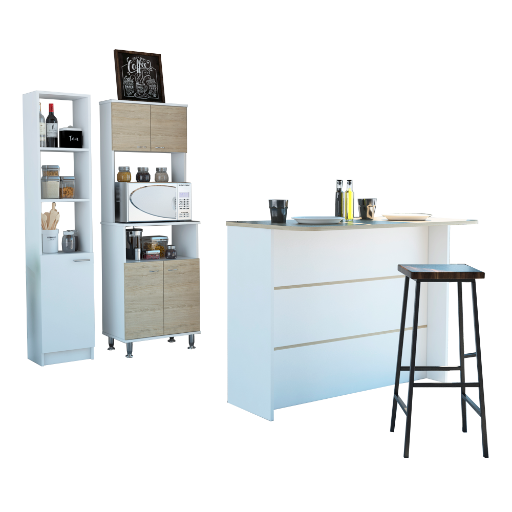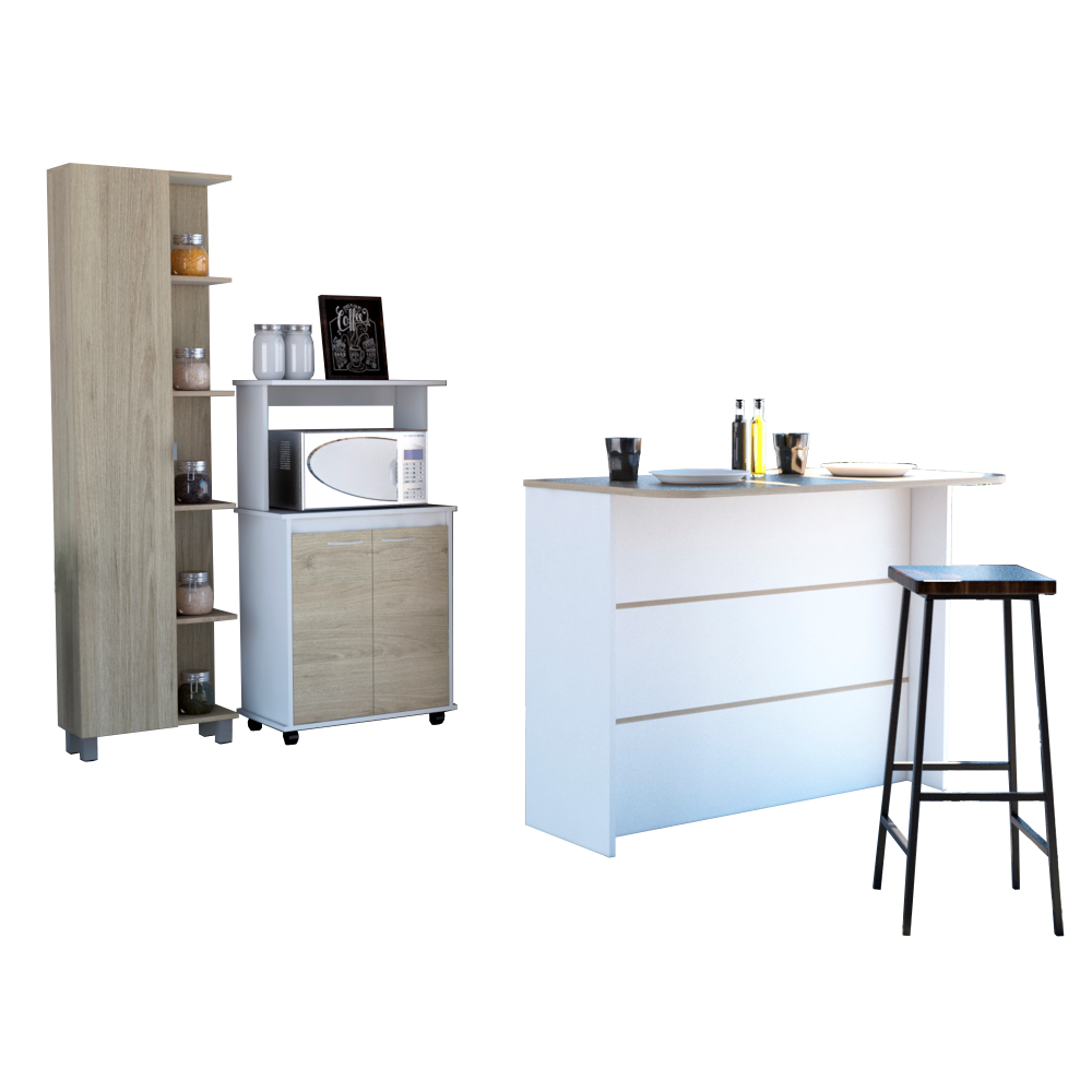 Combo Kitchen, Blanco y Rovere, incluye mueble microondas 54, barra y optimizador