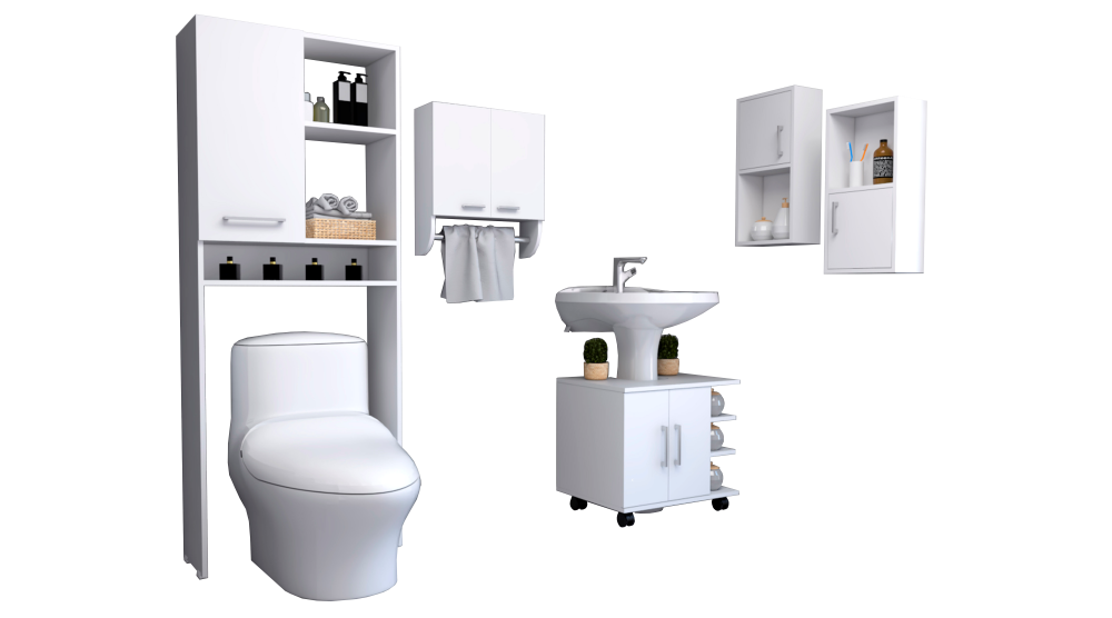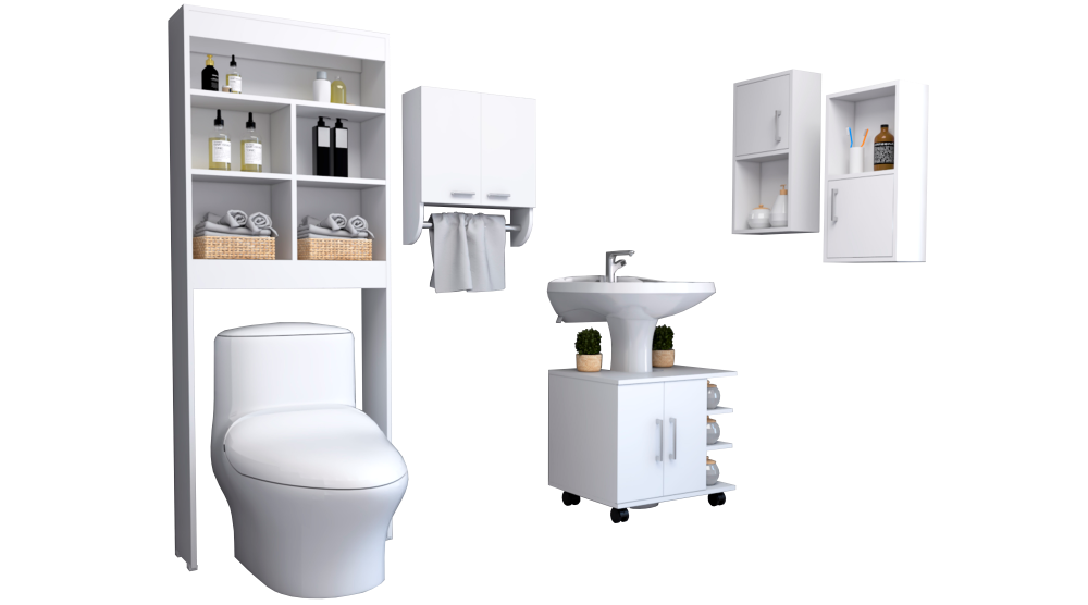 Combo Bicolor, Blanco, incluye botiquin bath 28, optimizador, mueble lavamanos y auxiliar