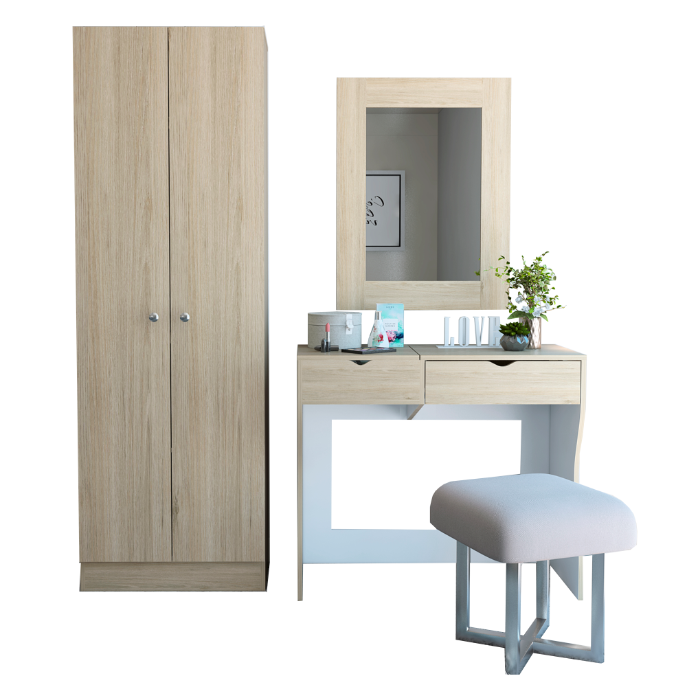 Combo Perla, Rovere y Blanco, incluye tocador, zapatero con espejo y closet con dos puertas