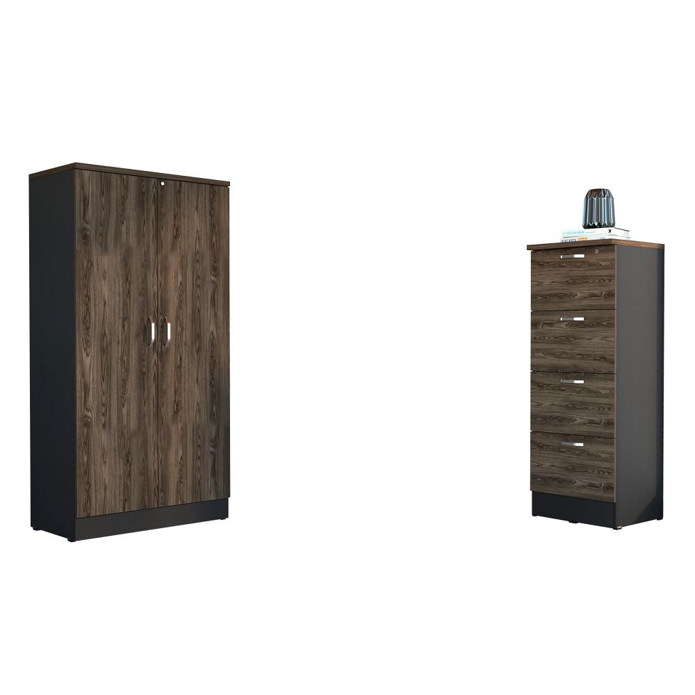 Combo Home Office: Archivador, con 4 cajones deslizables. Biblioteca, con 3 entrepaños, 2 puertas batientes y manijas. Elaborado en Madera...