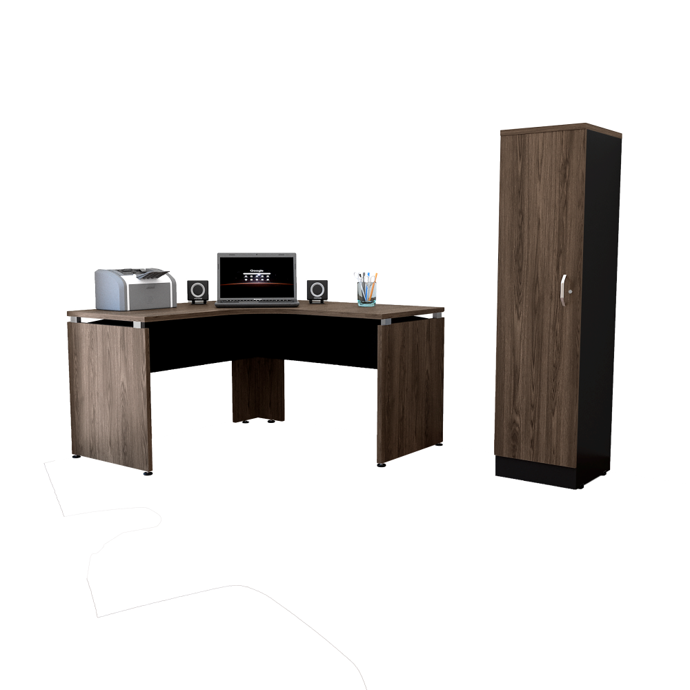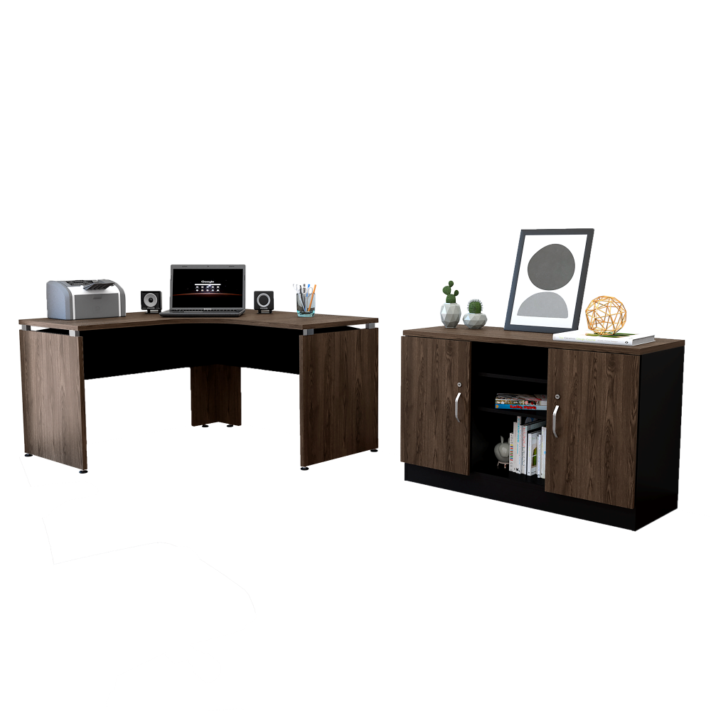 Combo Office, Negro Soft y Coñac, incluye escritorio 140 y gabinete con dos puertas