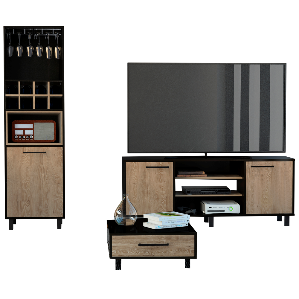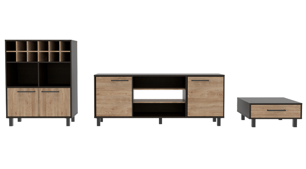 Combo Kaia, Wengue y Miel, incluye rack TV, bar y mesa centro