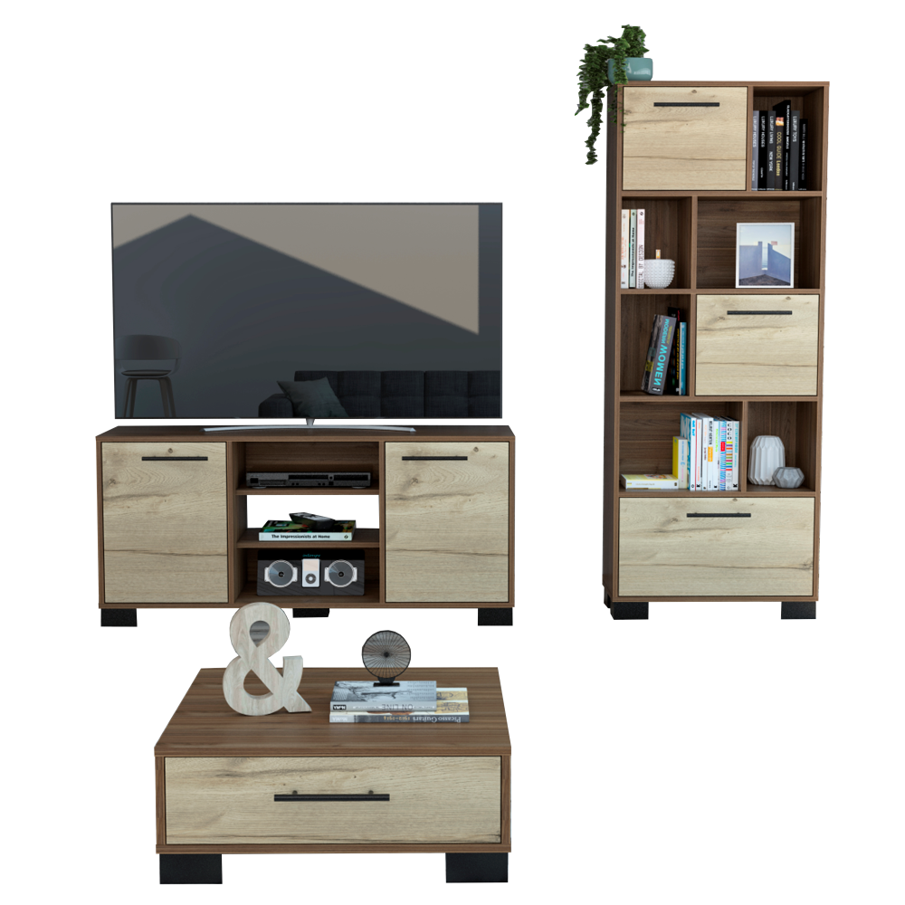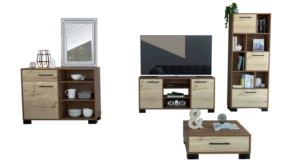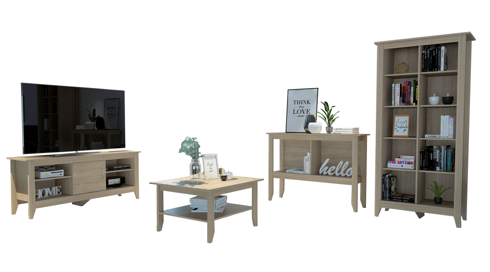 Combo Marsella, Gales y Duna, incluye rack TV, biblioteca y mesa centro