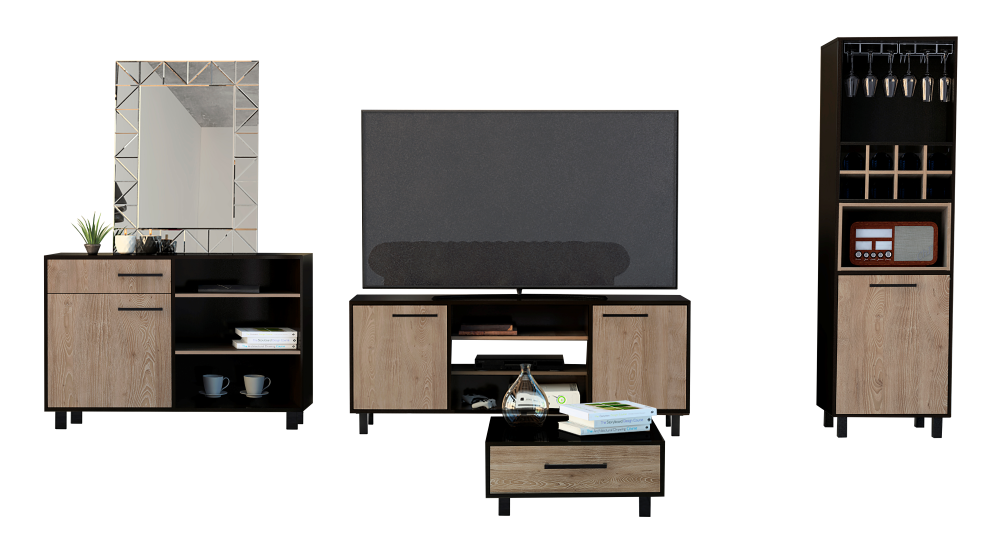 Combo Kaia, Kaia, incluye rack TV, bar alto, bife y mesa centro