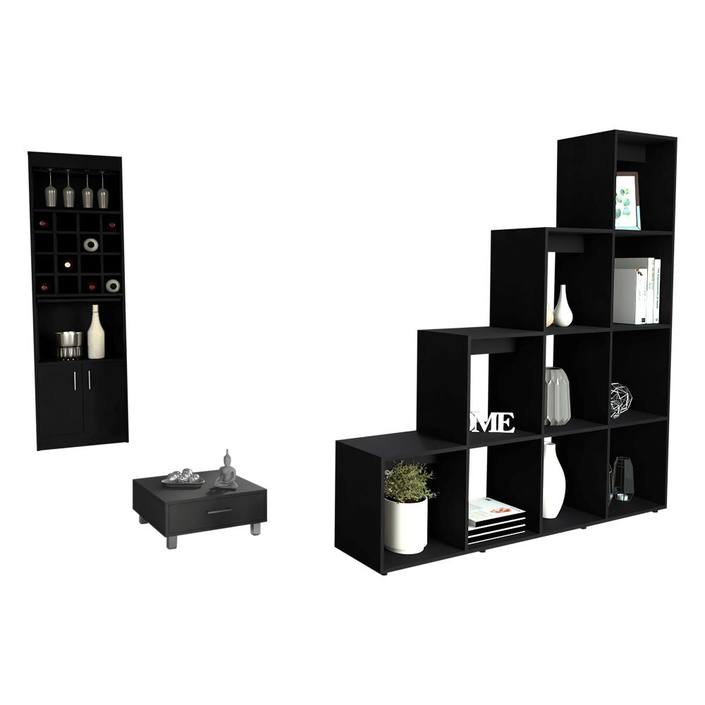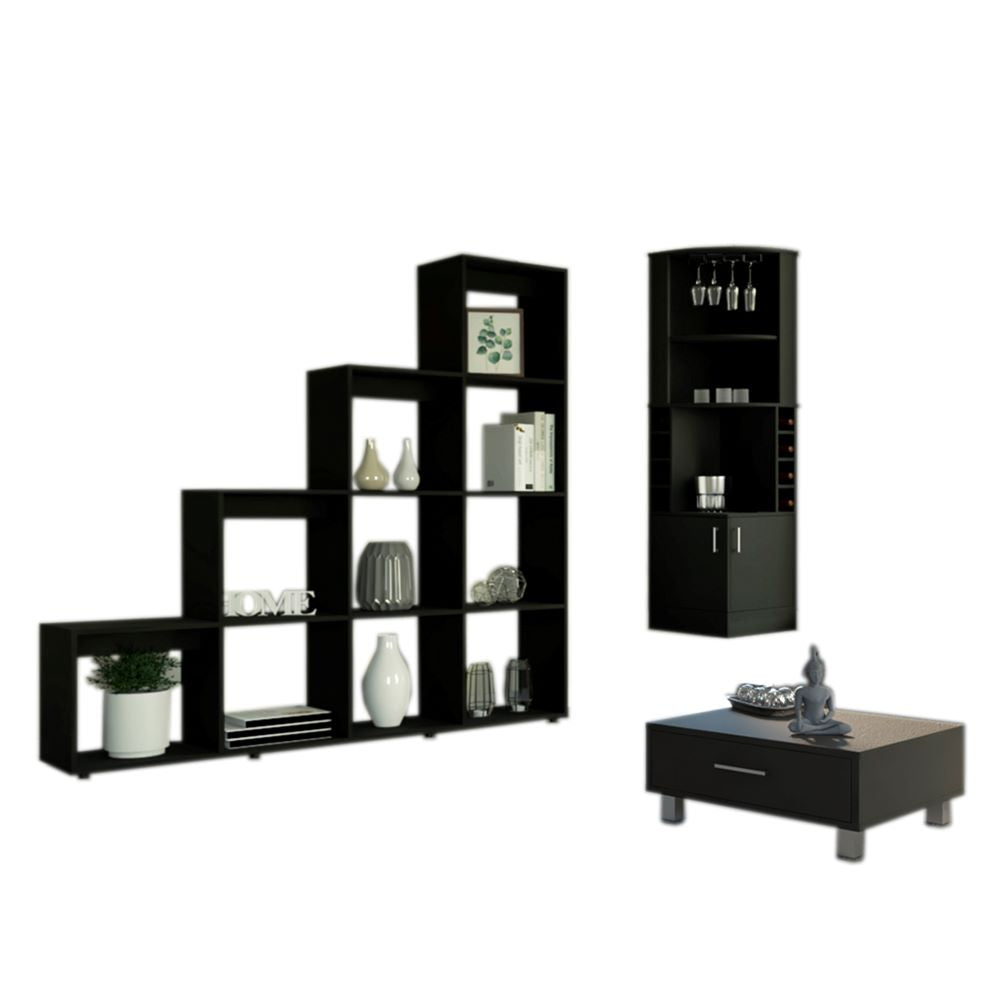 Combo Beijing, Wengue, incluye mesa de centro, bar y biblioteca cubo
