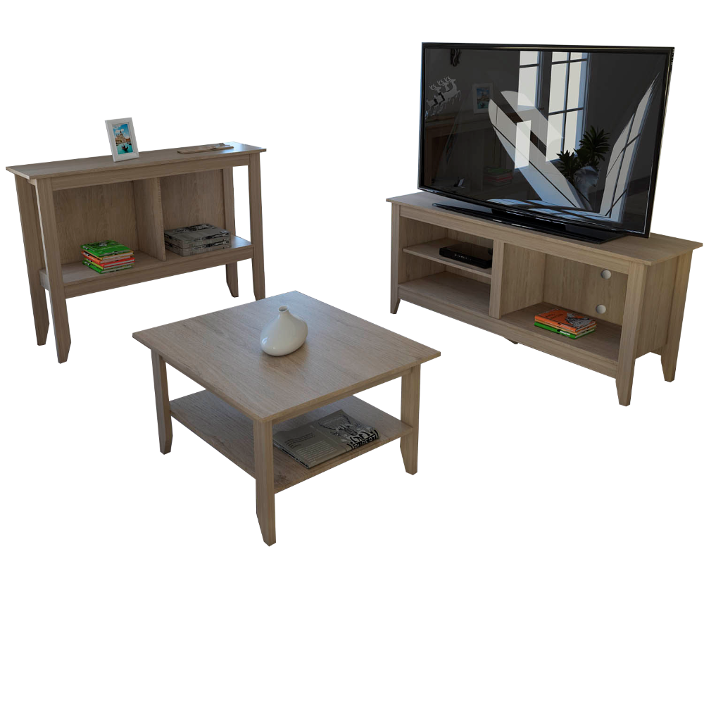 Combo Essential, Rovere, incluye rack TV, mesa de centro y arrimo