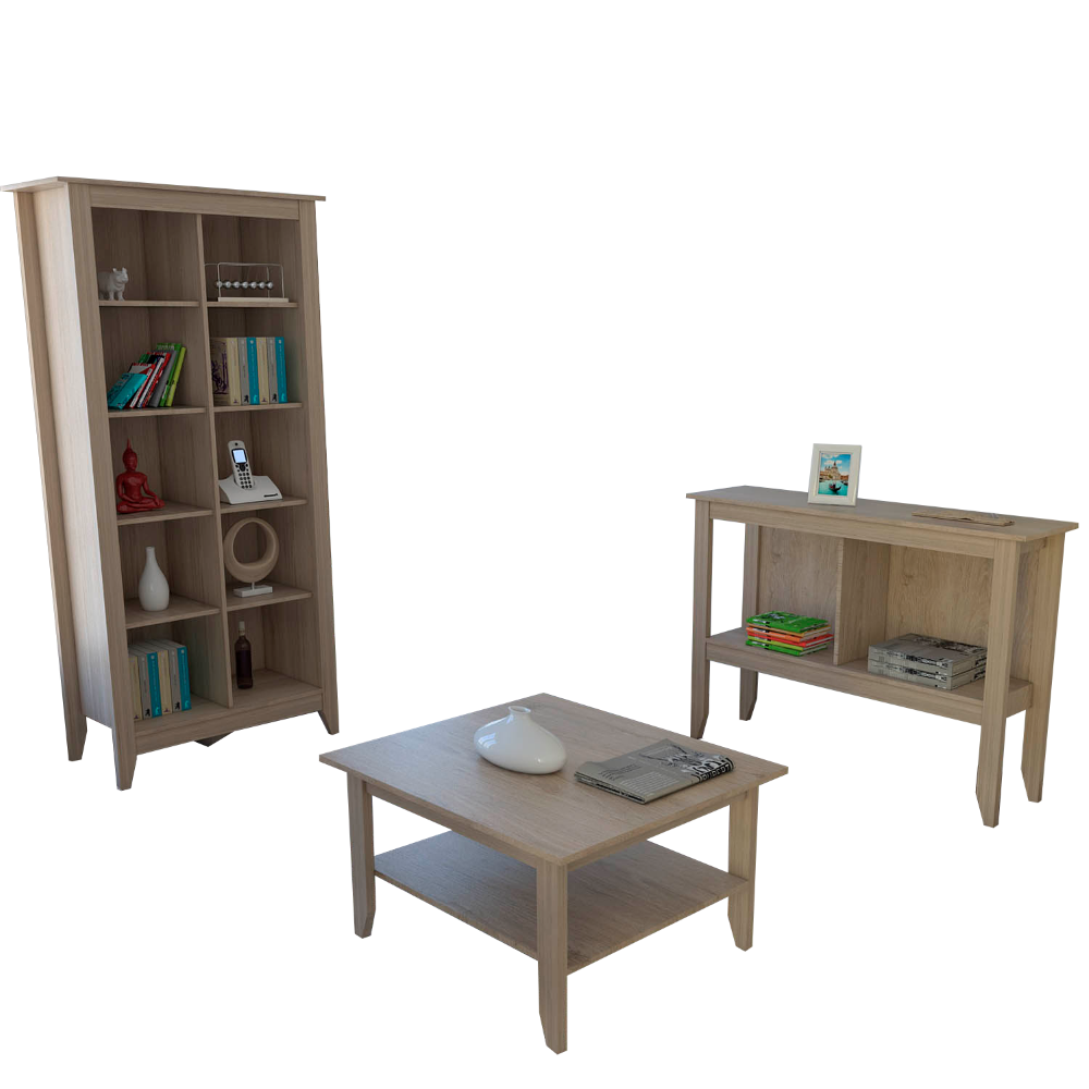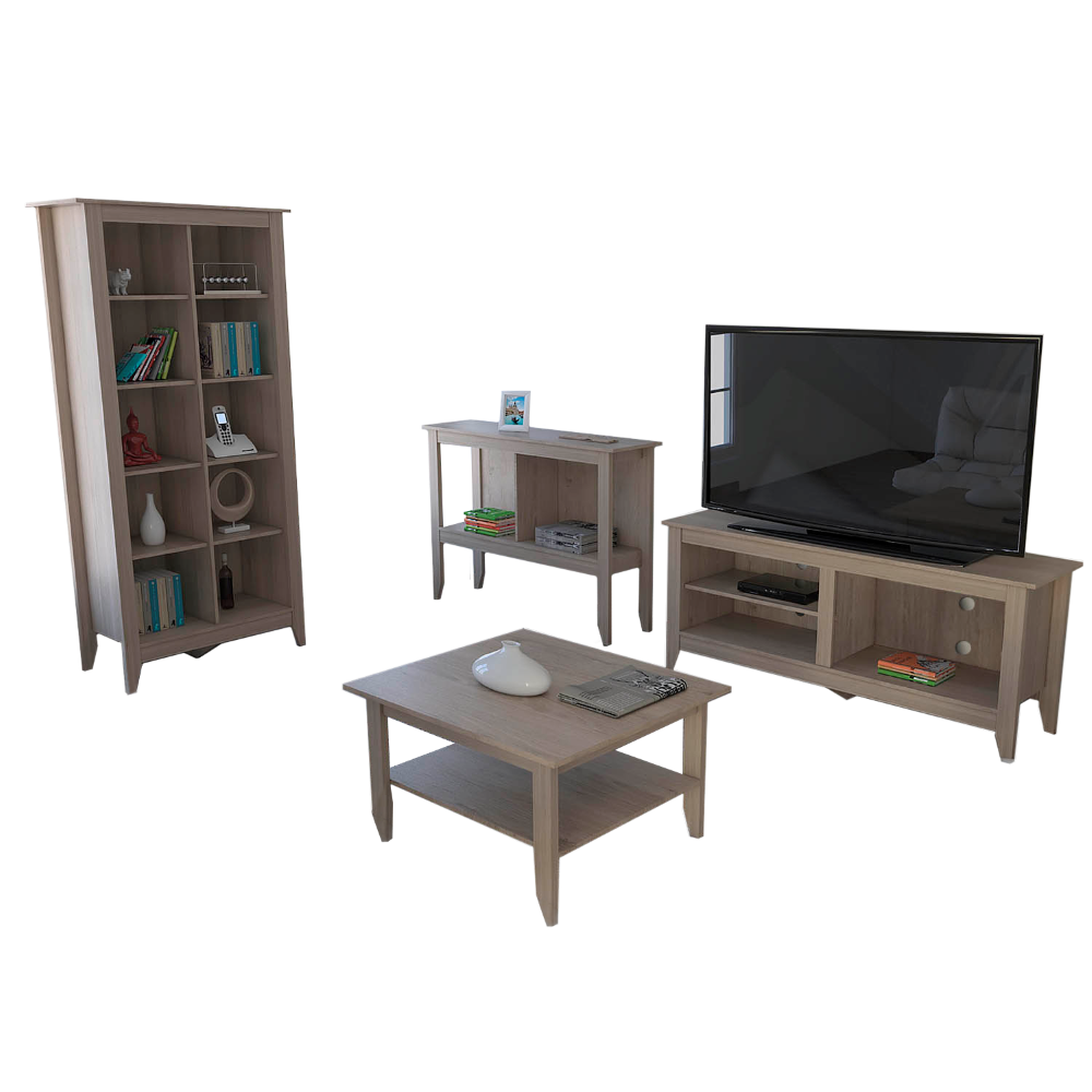 Combo Essential, Rovere, incluye librero, arrimo y mesa de centro