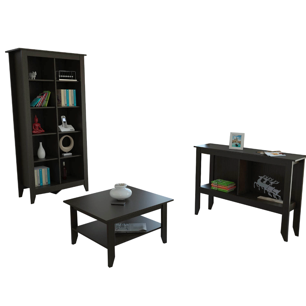 Combo Essential, Wengue, incluye librero, arrimo y mesa de centro