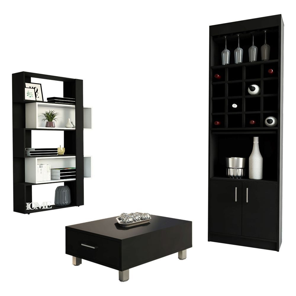 Combo Beijing: Mesa de centro, con un cajón deslizable y amplia superficie. Bar, con 3 puertas batientes, botellero con capacidad...