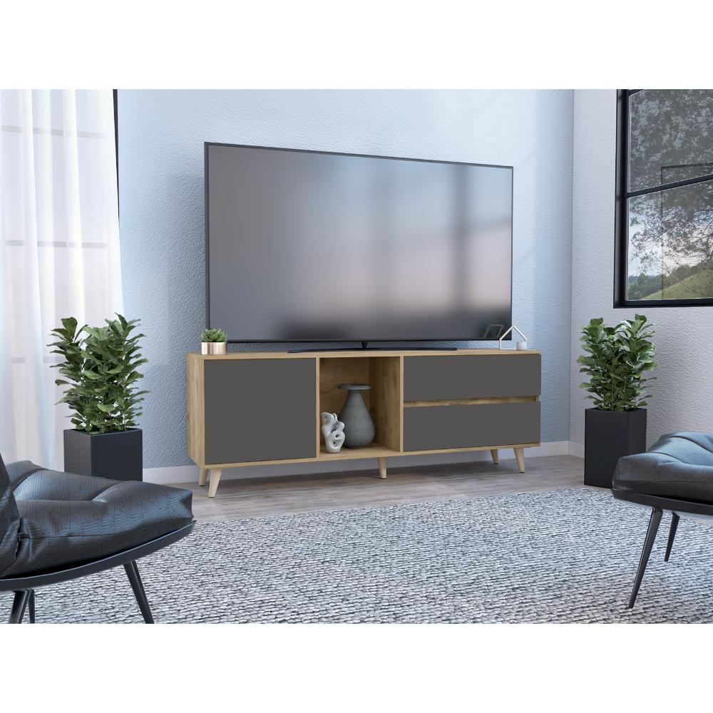 Mesa Para Tv Nashira, Macadamia y Plata Oscuro, con Espacio Para Televisor de Hasta 65 Pulgadas