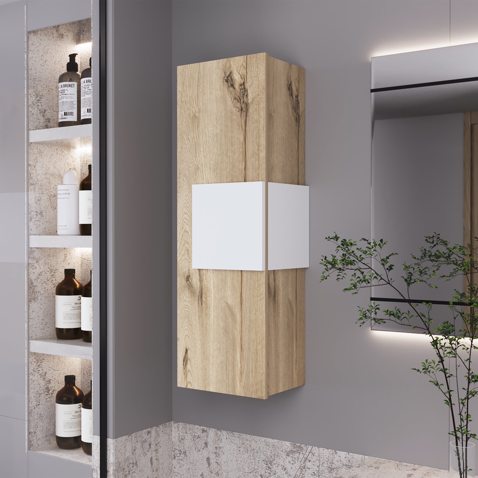 Mueble Optimizador Bath BI, Duna y blanco, con tres entrepaños en escalera