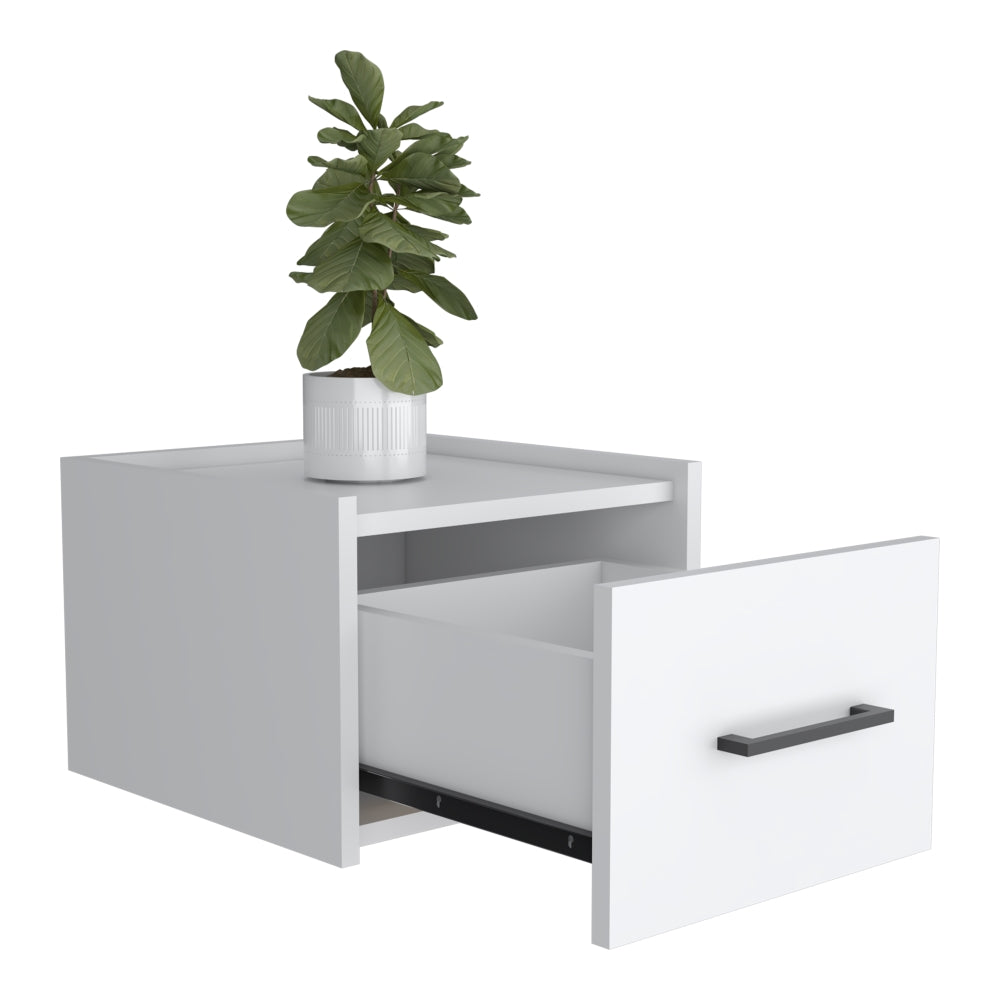 Velador Flotante Un Cajón, FM Furniture 007B, Blanco